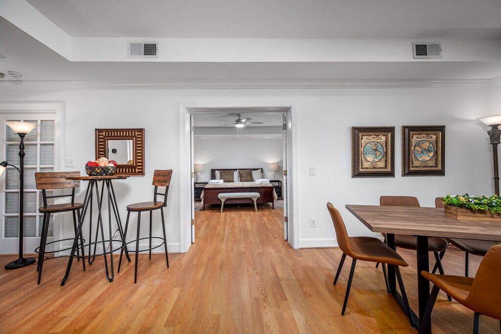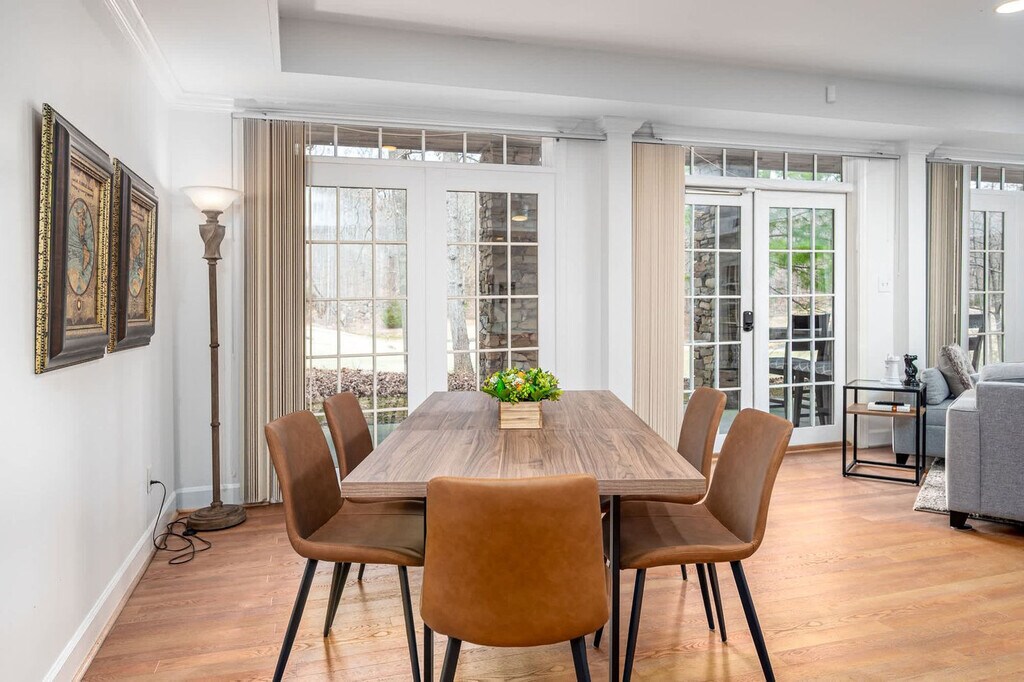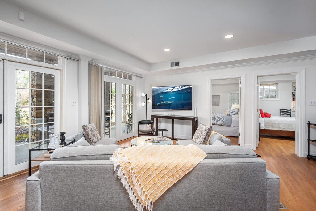 Welcome to The Clubhouse Hideaway, a luxurious 3-bedroom retreat in the exclusive Governors Club of Chapel Hill. Overlooking the Jack Nicklaus Signature Golf Course, this stylish getaway features two suites with private baths and kitchenette nooks, plus a twin room. Enjoy a pool table, spacious living area, kitchen, and breathtaking golf course views, perfect for a relaxing escape near top dining, shopping, and UNC-Chapel Hill. Nestled in the scenic rolling hills of Chapel Hill, Governor’s Club is an exclusive gated community offering a blend of luxury, tranquility, and Southern charm. Recognized as one of North Carolina’s premier private communities, this neighborhood provides a peaceful retreat while being conveniently close to the vibrant culture of Chapel Hill and the Research Triangle. Guests will enjoy beautifully landscaped streets and a quiet atmosphere perfect for relaxation. Whether you're visiting for business, a UNC event, a Duke event, a medical reason, a wedding, or a golf getaway, Governor’s Club offers an ideal home base. The apartment is 15 minutes to the University of North Carolina at Chapel Hill, 20 minutes to Research Triangle Park and Durham, and 30 minutes to Raleigh-Durham International Airport (RDU), and close to top-rated restaurants, shopping, and cultural attractions. Outside areas are monitored by audio and video recording 24/7. [SI]