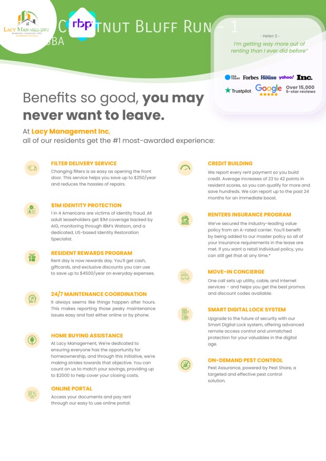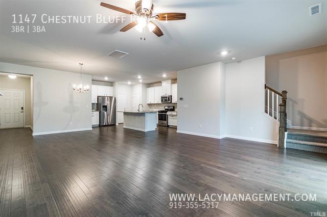 There is currently a 3 Bed 2 Bath Townhome for rent with 2,165 sq ft listed at 1147 Chestnut Bluff Run. It is Available April 15, 2026.