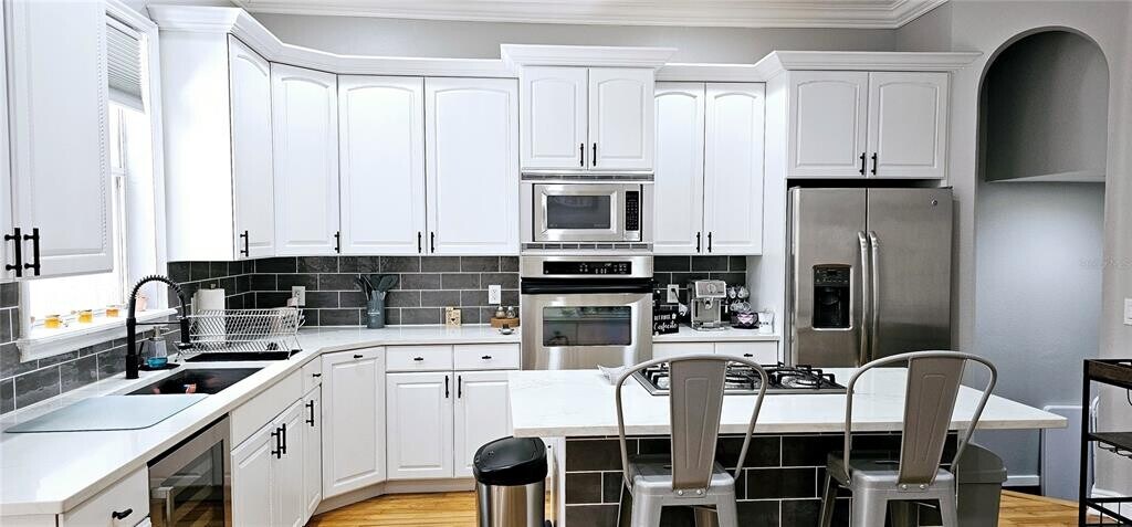 Welcome to this stunning,chic,Urban-style Townhome located in the heart of Delaney Park in Orlando. This home is a perfect blend of modern luxury and classic charm,ideal for those who desire a vibrant city lifestyle. The brick exterior exudes urban sophistication. While the private courtyard offers a serene space for relaxation,the third floor expansive rooftop deck is the perfect place to unwind after a long day. Additionally,a quaint front balcony provides a charming spot to enjoy the neighborhood views. Two reserved parking spaces provide convenience and ease. Features include: Three very spacious bedrooms,each with its own private En-Suite bathroom and walk-in closet. All bathrooms are modern and upgraded,ensuring comfort and style. An additional first floor half bathroom adds convenience for guests. The fully renovated Kitchen boasts Quartz countertops and island with a breakfast bar,and top-of-the-line Stainless Steel appliances,including a built-in oven and gas cooktop. A wine cooler adds a touch of luxury. Original hardwood floors run throughout the home,adding warmth and character. The Living room has a charming bay window which adds a touch of elegance and floods the living space with natural light. Situated in the desirable Delaney Park area between Downtown Orlando and SODO,this Townhome is within walking distance to major hospitals and medical institutes,making it an appealing choice for medical professionals or anyone working in the City. Enjoy easy access to a plethora of shopping and dining options,as well as convenient commuting via nearby highways. Rent includes a washer and dryer,a Ring Doorbell on both the front and back entrances and all grounds care,ensuring a hassle-free living experience. This townhome offers a unique blend of urban living and modern amenities in a prime location. Don't miss the opportunity to make this exquisite residence your new home! MLS# O6387881