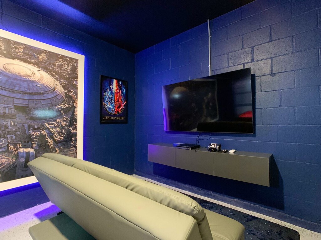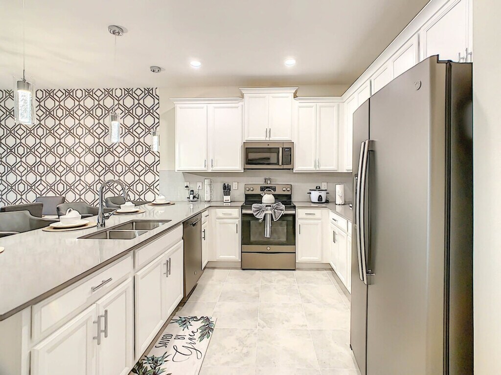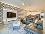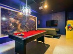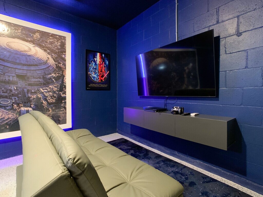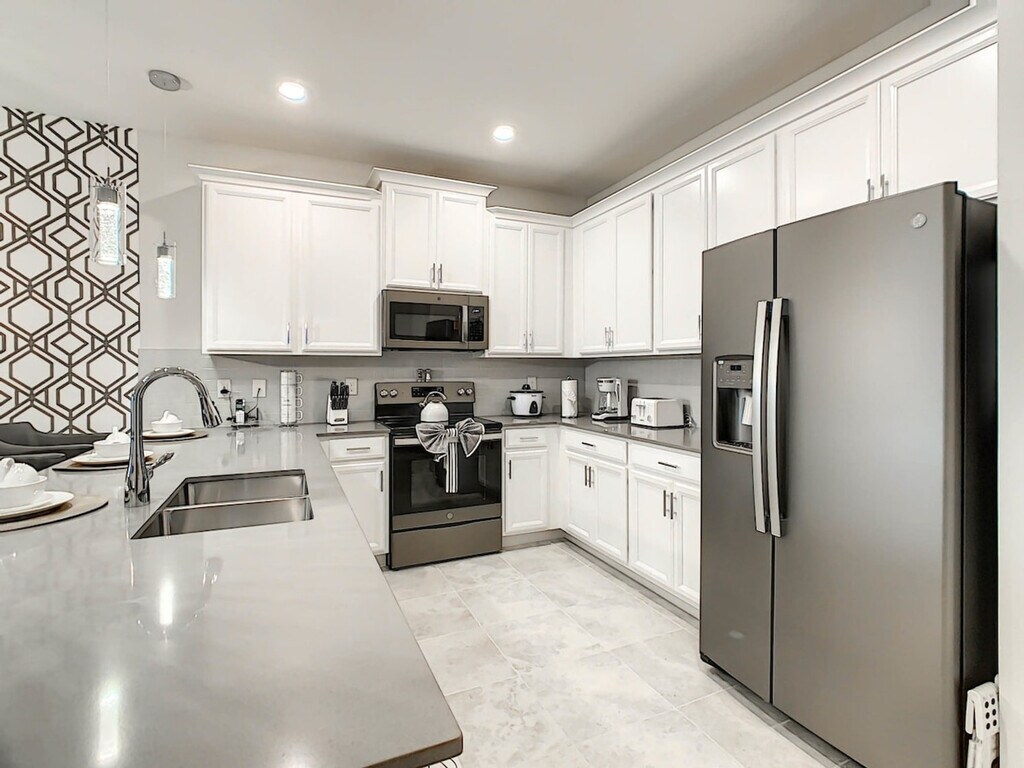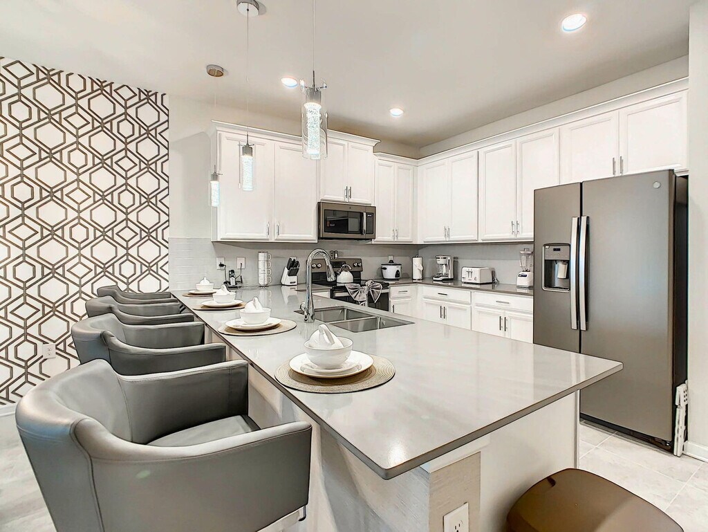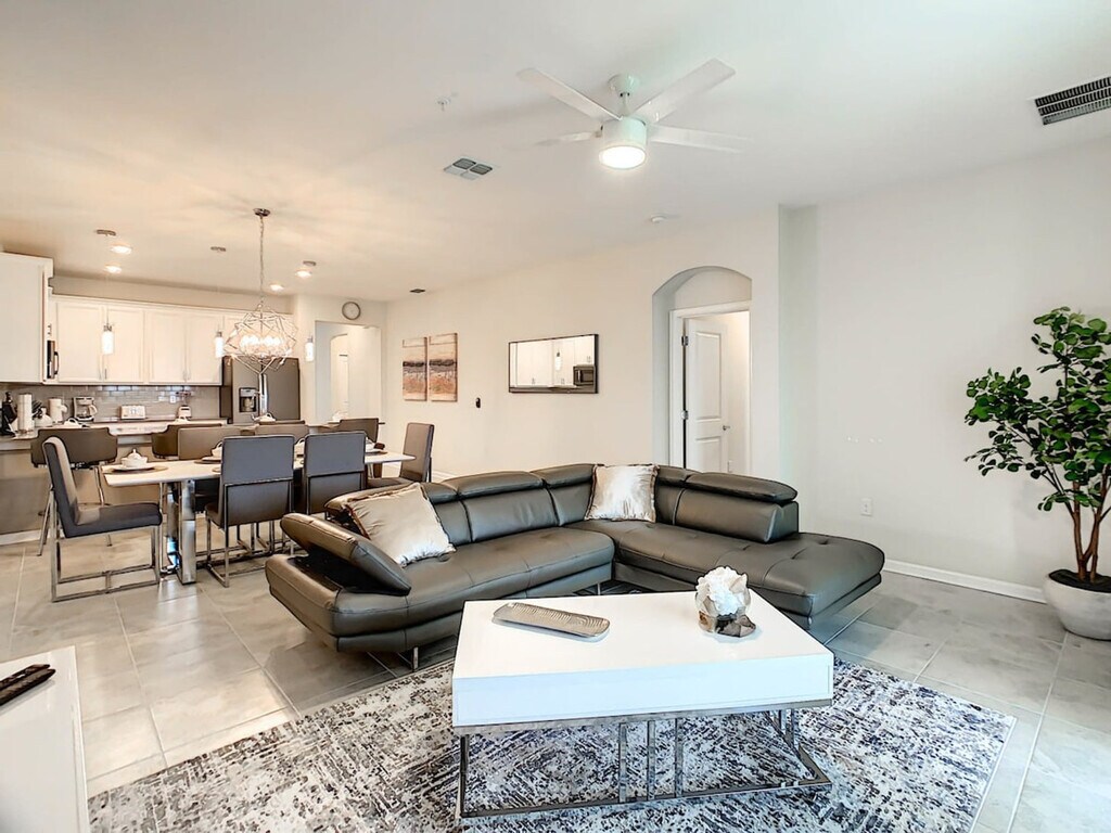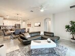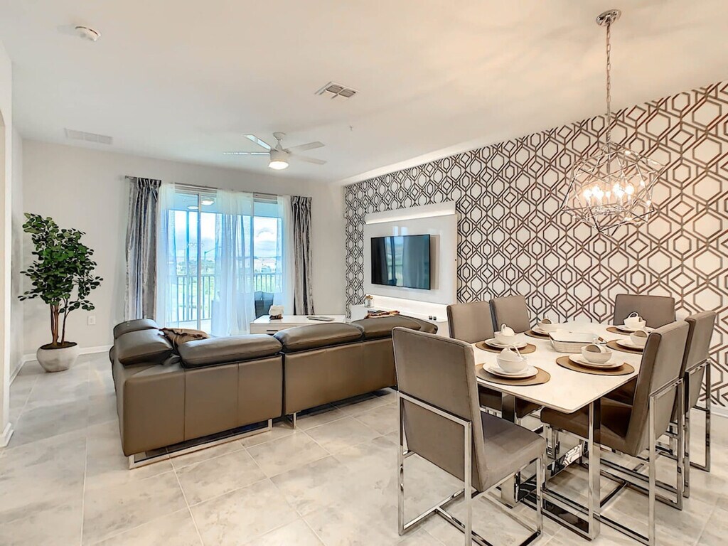 Experience the excitement of the new Epic Universe park this May 22nd by booking your stay in this comfortable second-floor apartment, just minutes away. Feel at home with a fully equipped kitchen, air conditioning, and high-speed internet. The property features three bedrooms, including a master bedroom with a king-size bed and en-suite bathroom, and a thematic Mickey Mouse room with double-size beds. Enjoy the living room with a smart TV and a social area with a dining room for six people. Free parking is available, and guests must climb stairs to access the unit. Enjoy full complimentary access to the resort's amenities, including a gym, heated swimming pools, a lazy river, a water park, and more. The main clubhouse, Oasis Club, is located just 7 minutes away by car, offering a bar, family cinema, and business center. A second clubhouse features a pool, water slide, mini-golf, and tiki cabanas, with some amenities available for an additional fee. The apartment is equipped with four smart TVs, patio furniture, hair dryers, a washer/dryer, ironing supplies, and resort access. Optional paid services include access to a spa center, golf, and a restaurant. Additional services such as Pack and Play, high chair, early check-in, and late check-out are available for an extra cost. Please inquire about availability before booking these services. Located near major attractions, this apartment is 20 miles from Sea World, 22 miles from Universal, and 14 miles from Disney World Magic Kingdom. Nearby outlets include Ross Dress for Less and Sephora, while supermarkets like Publix and Target are within a short drive. Transportation options include Uber and Lyft, and local restaurants and golf courses are easily accessible. Guests must be at least 18 years old to book a reservation. No unregistered guests, smoking, or pets are allowed inside the property. The apartment is keyless, with a code provided prior to check-in. Guests are required to share a guest list to access the resort and create QR codes. Be aware of ongoing repairs in the property area. A safety protocol is in place, and pre-check-in cleaning is conducted following WHO and HSE standards. The property is exclusively for vacation use, and filming is not allowed without prior authorization. The apartment offers high-speed internet, making it remote work-friendly, although a laptop computer is not included. [SI]