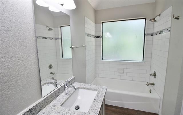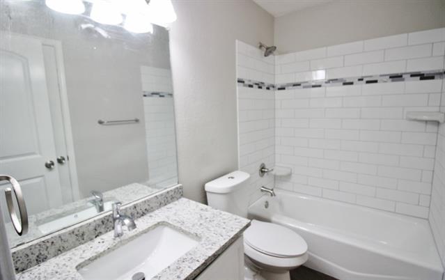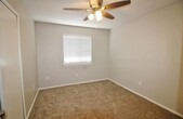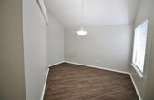 Discover this beautifully updated 3-2-2 home offering a blend of modern style and cozy comfort. With light-filled interiors and a fantastic, tree-lined backyard, this property is ready to welcome you. Relax in the spacious living room with vaulted ceilings, rich wood-look flooring, and a charming corner brick fireplace. The heart of the home, the kitchen, features stylish gray cabinetry, light-colored granite countertops, a crisp white subway tile backsplash, and appliances including a built-in microwave, dishwasher, disposal and stove. The open layout includes a breakfast bar looking into the main living space. The primary bedroom is warm and bright with plush carpeting and a ceiling fan. The renovated primary bath includes dual sinks and custom tile surround. Enjoy the serene backyard, complete with a wooden deck for outdoor dining and entertaining, a spacious fenced yard, and plenty of mature trees offering a natural, secluded feel. This home combines practical updates with a desirable layout in a lovely setting. Don't miss the chance to make it yours! Owner must approve all pets.