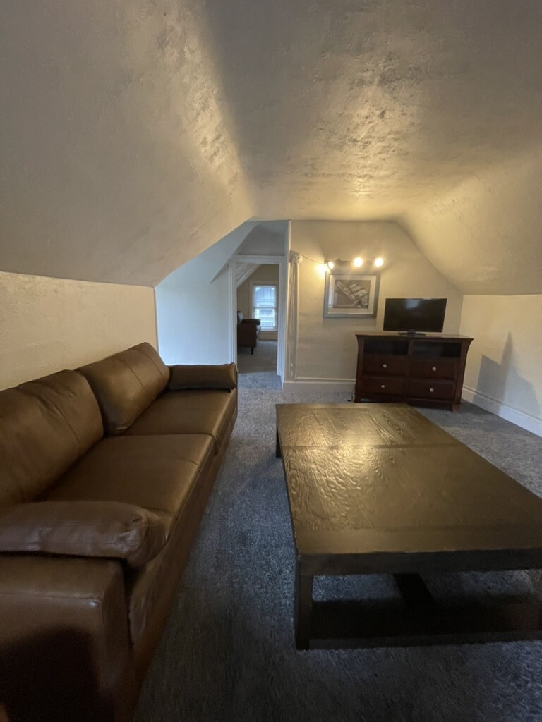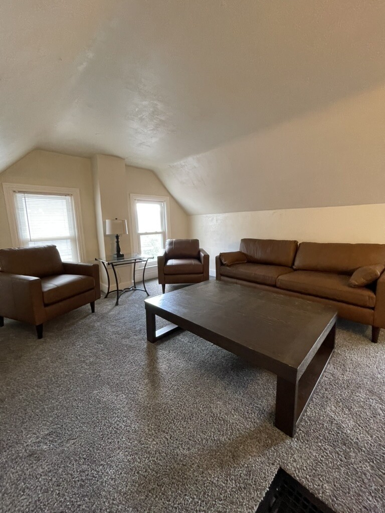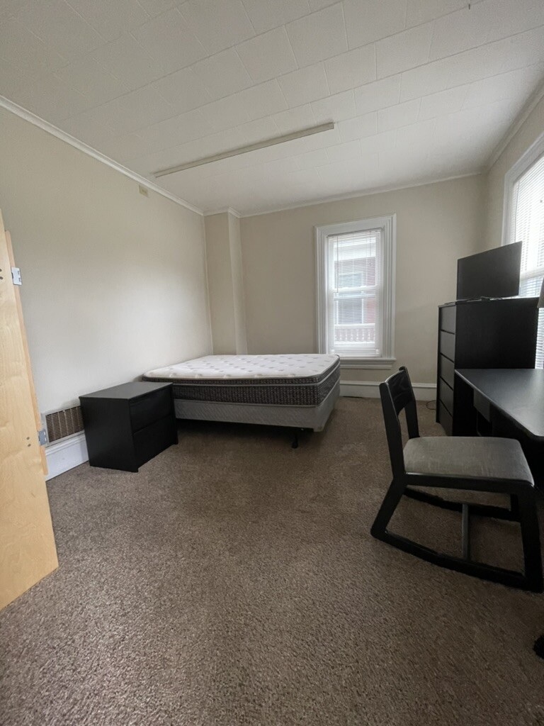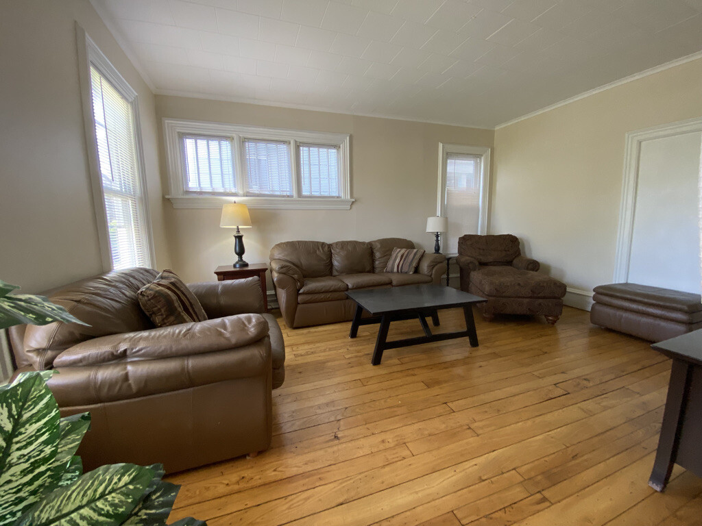 || $3,500 PER SEMESTER PER STUDENT || ALL UTILITIES INCLUDED || ANIMAL ALLERGEN FREE || Fully furnished convertible house? Yes, this building contains a 2 bedroom furnished apartment and also has a three-bedroom furnished apartment OR lease it as a five-bedroom. When it is a five-bedroom it has two kitchens, three baths, and two living rooms. This home is in process of exterior renovations that are nearly complete. Chestnut floors continue into the adjacent living room. The bright living room is filled with natural light and furnished with cozy furnishings. We provide couches, club chairs, coffee tables, end tables, media stands, TVs, dressers. side tables. full-sized beds and interior decorations that make it feel like home. The home's kitchen is new traditional with a trendy facelift, new countertops, peninsula seating for four, and stainless appliances. Appliances provided are a new LG side-by-side refrigerator (with icemaker), stove/oven, microwave, and dishwasher. The resident free use washer and dryer area is located in the first-floor mudroom and is shared. There are five private, keyed-locked bedrooms in this unit. A half a bath is an on-suite to one bedroom and the new main bath has a soaking tub and shower unit and large vanity. This home comes with central air and all utilities are included excluding cable and internet. Standouts for this home are the optional two-bay garage and outdoor spaces where you can play horseshoes, take a break on the front porch or hang in the shad of the side patio. SUMMER LEASING AVAILABLE
