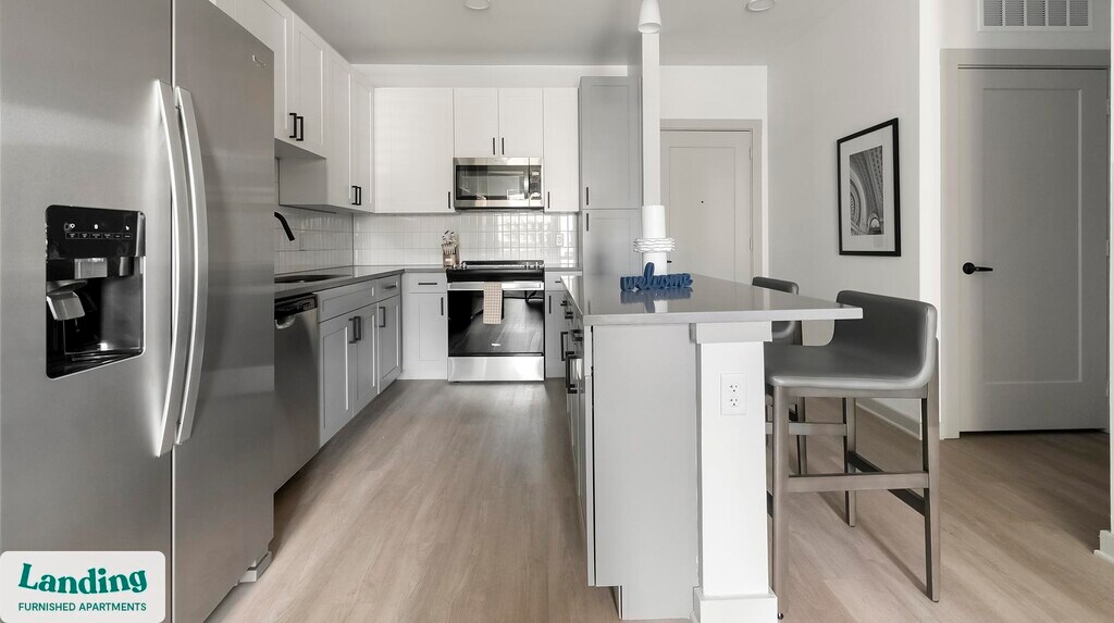 Landing offers flexible lease terms from weeks to months. Please always visit our website or contact us for the latest pricing & availability. Stay longer, save more: 6-Month Minimum base rent: starts at $2112/mo 12-Month Minimum base rent: starts at $1662/mo Landing offers flexible leases across a network of over 35,000 fully-furnished apartments throughout 375+ cities so you can rent on your terms, practically anywhere, and avoid the hassle of paying deposits or application fees. Visit to learn about all the benefits of a Landing membership, see our competitive up-to-date pricing, explore available apartments, take virtual tours, and make reservations online without jumping through traditional rental hoops. Landing's apartments at Corner on Main are designed for comfortable, easy living, with the ability to stay as long as you like. Experience living with Landing Every apartment is outfitted with all the modern essentials including: custom-designed furnishings, a fully-equipped kitchen with deluxe stainless steel appliances, a gourmet coffee maker, premium linens, Smart TVs, and incredibly fast, reliable internet for working from home. When you live with Landing, you'll enjoy a hassle-free experience with the added benefit of 24/7 access to our dedicated member experience team. Some of the nitty-gritty: a background check and proof of income are required; we're completely smoke-free; bundled utility packages and pricing vary based on length of stay; pet-friendly options available; listed price reflects a 12-month minimum stay.