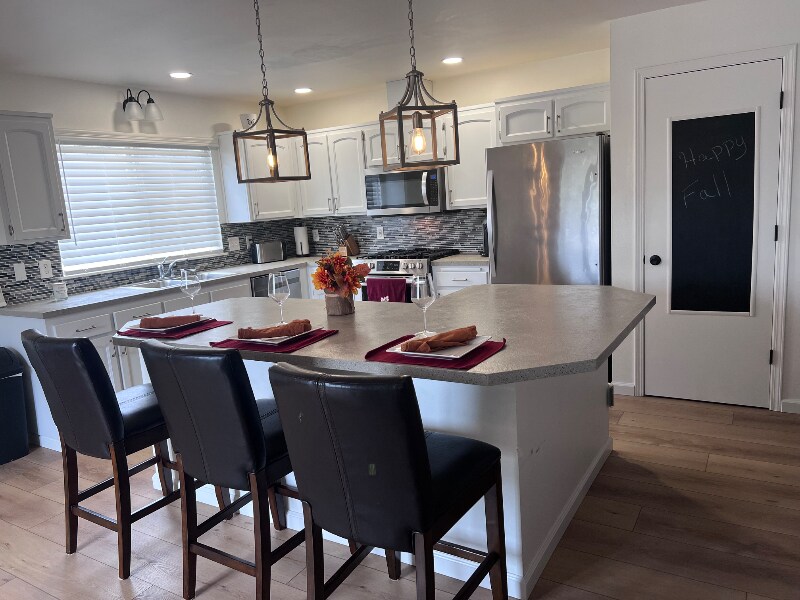 Property Id: 2185509 Available 2/9. Beautifully updated, furnished 3 bedroom 2 bath home, 2 car garage. gas fireplace, new appliances, A/C, open floor plan, large back patio set with pit boss grill for you to use in a private and very quiet neighborhood. Large master bedroom with a walk in closet and bathroom. This is a fully furnished mid term rental minimum 30 day stay. Utilities are included.