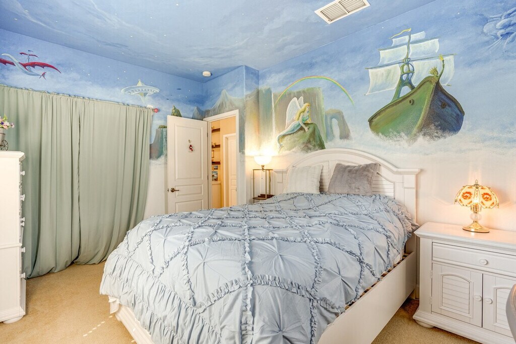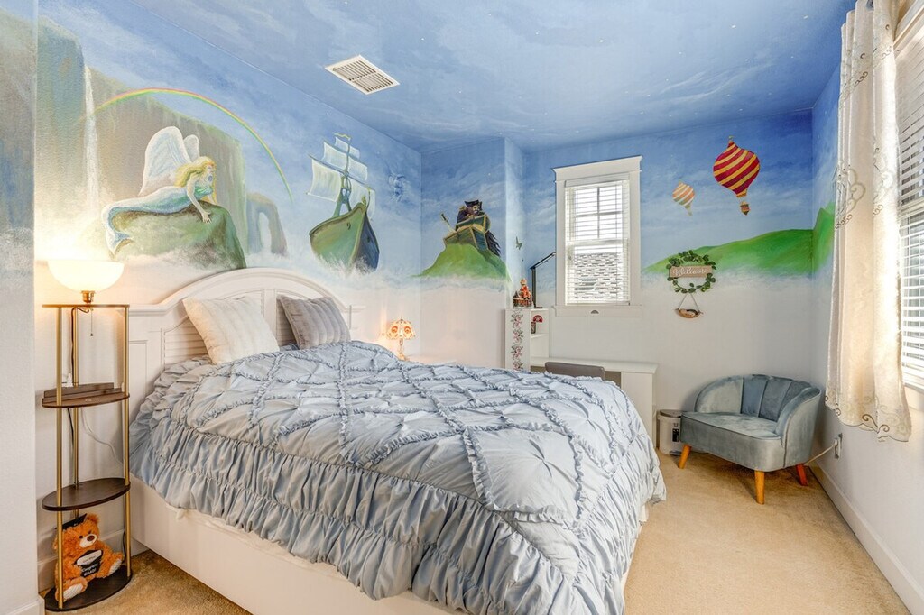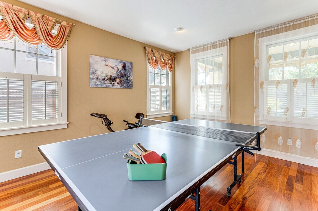 Nestled in the seaside town of Hercules, this cozy 4-bedroom, 2.5-bathroom vacation rental offers a fully equipped kitchen, an inviting interior, and outdoor entertainment space, ensuring your California getaway will be one to remember. Enjoy the stunning views of the San Francisco Bay from this charming home. The apartment features a porch, an updated fenced-in patio with a pergola equipped with remote-controlled lights, outdoor seating and dining, a swing, a fire pit, a grill, and a flower garden. Indoors, enjoy flat-screen TVs, a 65" HDTV in the family room, a dining table, a breakfast nook, a ping-pong table, two office desks, a monitor, a dock station, a jetted tub, a walk-in shower, and a shower/tub combo. The kitchen is equipped with stainless steel appliances, a dishwasher, cooking basics, dishware, flatware, a drip coffee maker, a blender, a microwave, a toaster, and wine glasses. Parking is available in the driveway for one vehicle and street parking is also available. Take the kids on a fun-filled adventure at Six Flags Discovery Kingdom, explore Downtown San Francisco, and visit the Fisherman’s Wharf or Napa Valley. This location is perfect for a Napa wine day-trip or exploring the gourmet delights of Berkeley. The home is a 2-story building requiring 6 steps to enter, with plants along the railing. A bedroom and bathroom are available on the 1st floor, but interior stairs are required to access the bedrooms on the 2nd floor. Quiet hours are from 10:00 PM to 7:00 AM to respect the tranquility of the neighborhood. There is no access to the garage and bedroom walk-in closet. An exterior security camera is located by the front door facing the porch and street, recording video and sound when activated by motion. Smoking, pets, events, parties, or large gatherings are not allowed. Guests must be at least 25 years old to book. Additional fees and taxes may apply, and a photo ID may be required upon check-in. Includes two office desks, a monitor, and a dock station, making it remote work-friendly. Free high-speed Wi-Fi is provided for your convenience. [SI]