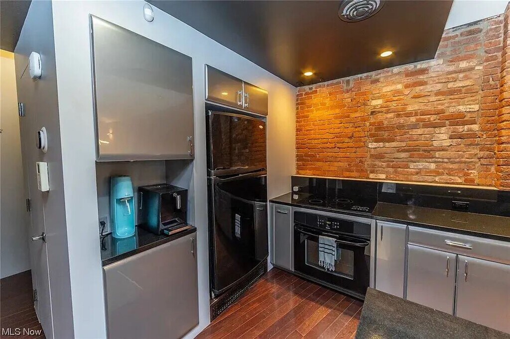 This stunning 1-bedroom downtown condo boasts a unique combination of exposed brick walls and modern finishes, creating a sleek and sophisticated living space. As you step into the unit, you'll be greeted by an open-concept living area that seamlessly flows into a modern kitchen with sleek countertops, and ample cabinet space.