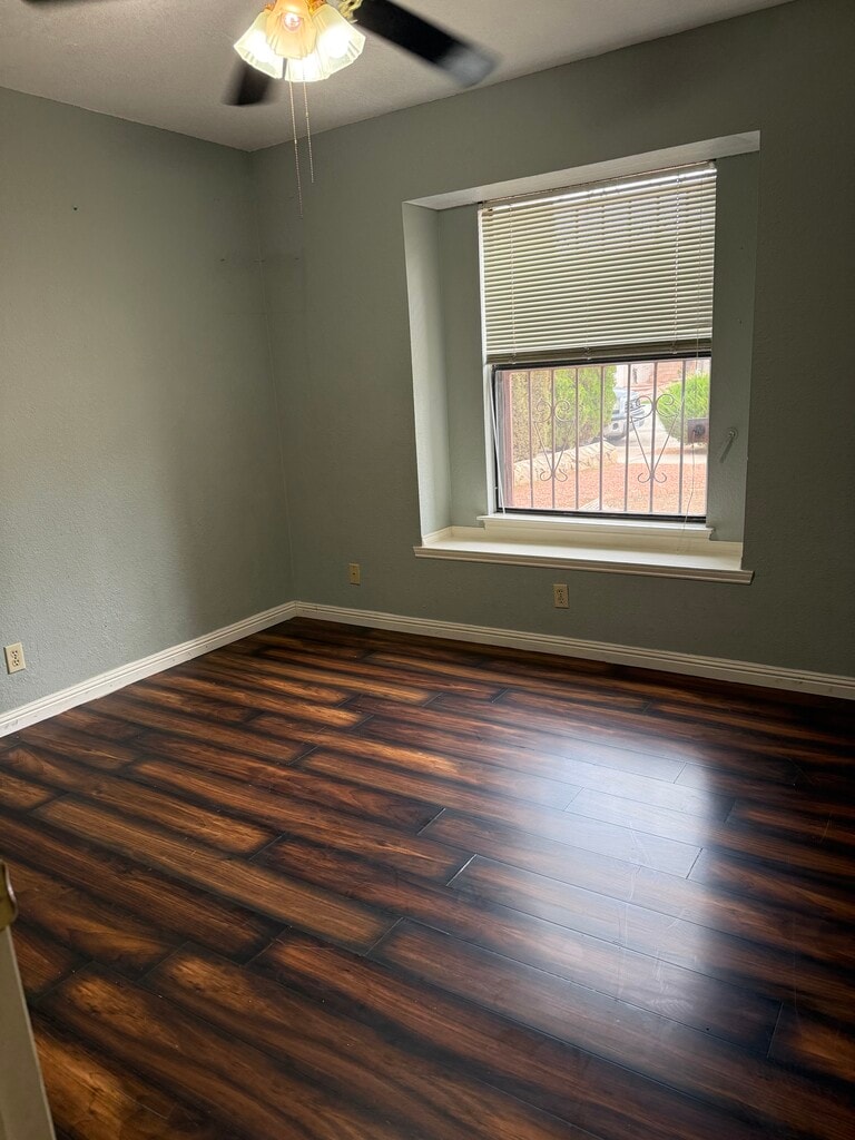 Make an appointment to see this charming gem! Lovely brick and stucco home in east El Paso. Freshly painted 3 bedroom, 2 bathroom, loft, built-in wet bar or can be used for bookcase and storage, unique fireplace, high ceilings, all bedrooms have window seats and wood floor, remainder of house is tile. Master bedroom is upstairs, walk-in closet, and bathroom. L - shape roomy storage closet under stairs, linen closet. Roomy kitchen with skylight, built in wine rack, travertine countertop and backsplash. Mini breakfast bar. Dining area has bay window. Nice size backyard with extended patio and beautiful custom built flower bed and Built in fire pit. Bonus - very friendly and polite neighbors that take pride in their home and front yard.Security- wrought iron on all windows. Updating light fixtures. Solid wood front door. Amenities included: central air, central heat, dishwasher, hardwood floors, stainless steel appliance, updated bathroom, and yard. No Utilities included. Is not pet friendly. Date Available: Nov 1st 2025. House is empty. The house is currently painted Evergreen Fog throughout the house. The last picture is the color of this paint. (It may not show this color in pictures)We are painting and adding some TLC to make this special house feel more and more like your perfect home. If needed sooner, we may have some flexibility. $1,500/month rent. $1,500 security deposit required. Please submit the form on this page or contact Annette Ramos at to learn more. This property is managed by a responsible landlord using Avail landlord software.