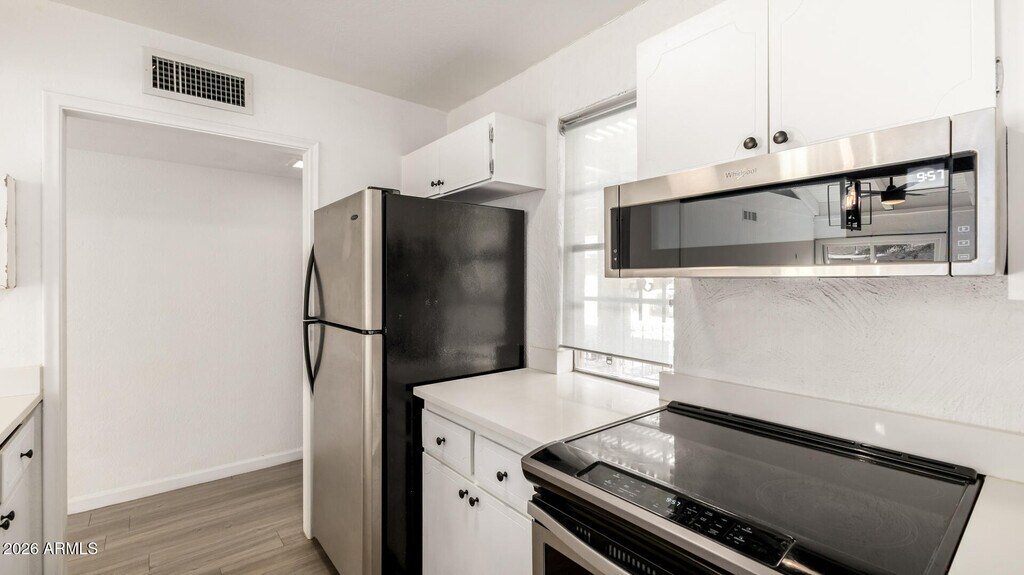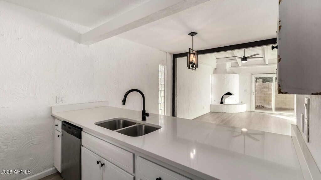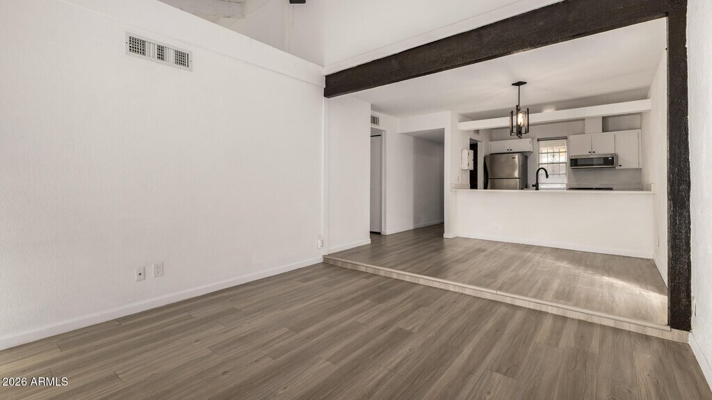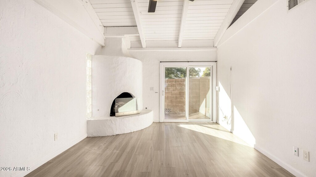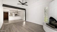 Charming 2 bed 1.75 bath Villa in a fantastic Central Phoenix location. End unit with greenbelt next to property. Open GREATROOM concept with vaulted ceilings and exposed beams. Kitchen offers ample counter space,and looks out into the great room. Spacious master bedroom + 2 sliders that lead out to a private patio with block fencing. Commuity Pool for those hot summer days. Water and trash comes with the rental price.