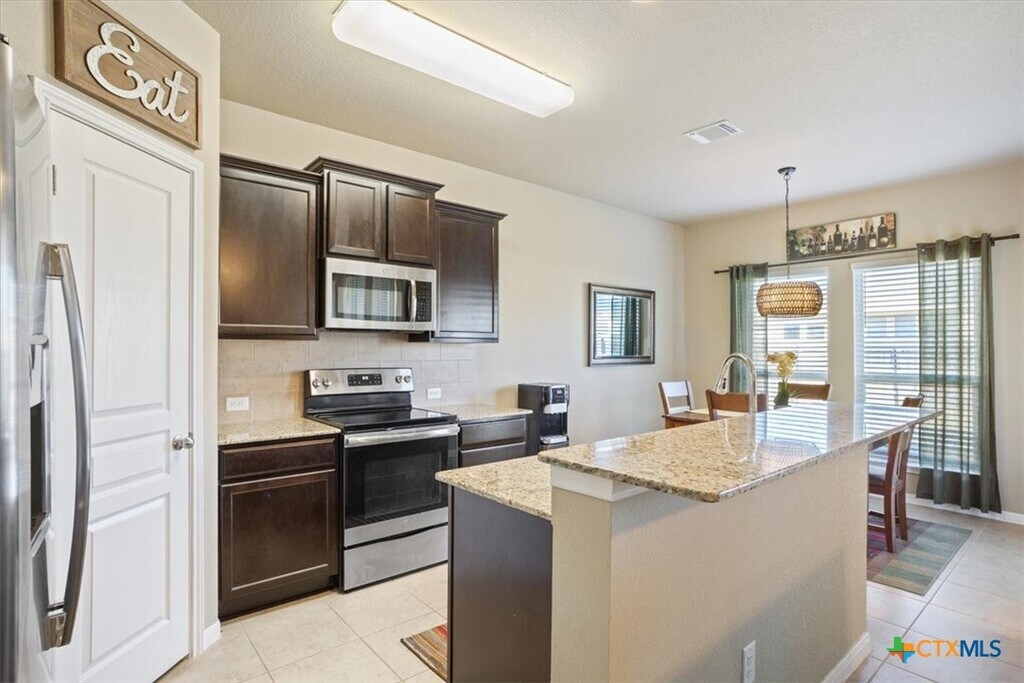 Step into the season with warmth and charm in this beautifully maintained 3 bedroom,2 bathroom home in Temple,Texas — the perfect place to celebrate the holidays and settle in before the new year. From the welcoming front porch where you can enjoy crisp winter mornings with a cup of hot cocoa,to the open-concept living area that’s ideal for hosting friends and family gatherings,this home was made for comfort and connection. Inside,you’ll find a bright and inviting layout with a spacious living room flowing effortlessly into the dining area and modern kitchen,complete with beautiful countertops,stainless steel appliances,rich cabinetry,and a breakfast bar,which is a wonderful spot for holiday baking and serving festive treats. The primary suite offers a peaceful retreat with a walk-in closet and ensuite bathroom with dual sinks,while two additional bedrooms provide flexibility for guests,a home office,or cozy reading room. After celebrating indoors,step outside to the fully fenced backyard and covered patio which is perfect for enjoying crisp evenings,twinkle lights,and winter barbecues. With plenty of yard space for pets or play,a two-car garage,tile flooring in living spaces,and plush carpeted bedrooms,this home blends practical conveniences with a warm,inviting atmosphere. Located near Belton Lake,shopping,dining,parks,and easy highway access,it offers the comfort of a peaceful neighborhood with close-by amenities. Make this holiday season extra special by finding your next home here. Pet friendly with approval and ready for you to move in and make memories!