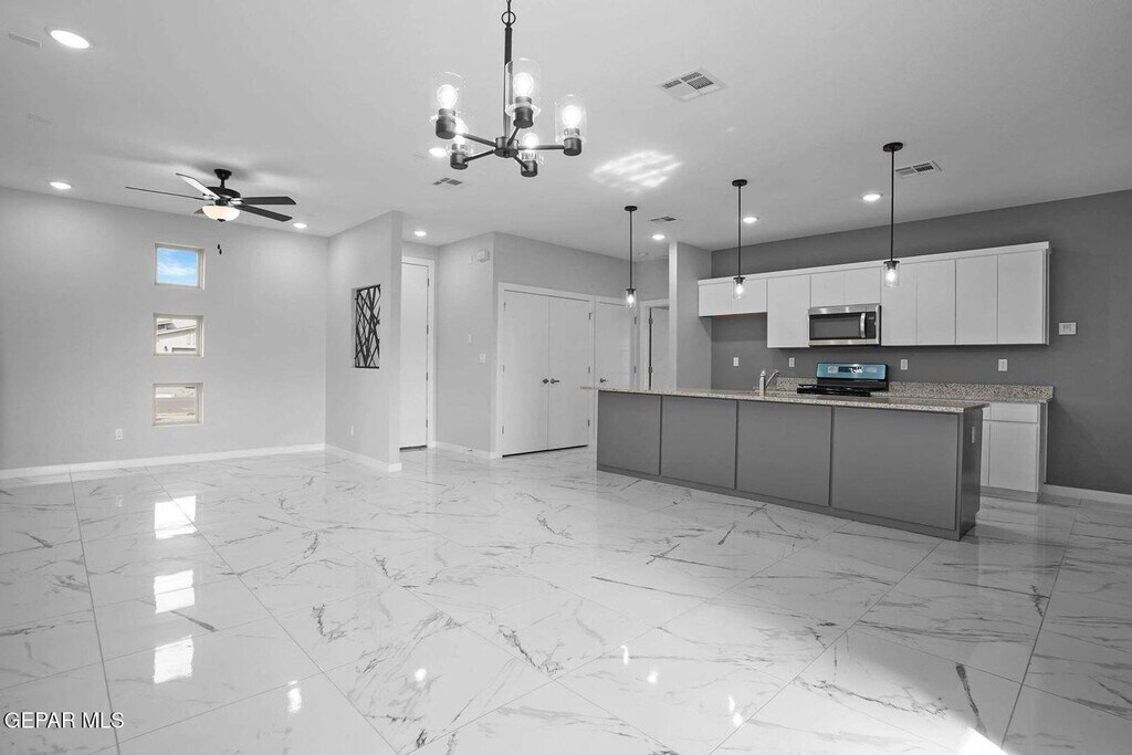 Welcome to our spacious 4-bedroom,3-bathroom apartment located in the vibrant community of Socorro,TX. This modern home features top-of-the-line amenities such as refrigerated A/C,recessed lighting,ceiling fans,stunning accent walls,a kitchen island,stainless steel appliances,granite countertops,and tile in common areas. The double car garage provides ample parking space,while the carpeted bedrooms offer comfort and style. Enjoy the convenience of window coverings,washer/dryer hookup,a master bath with double vanity sinks,and a walk-in closet for all your storage needs. Step outside to your private walled back yard,perfect for relaxing or entertaining guests. Don't miss out on this fantastic opportunity to call this apartment your new home!