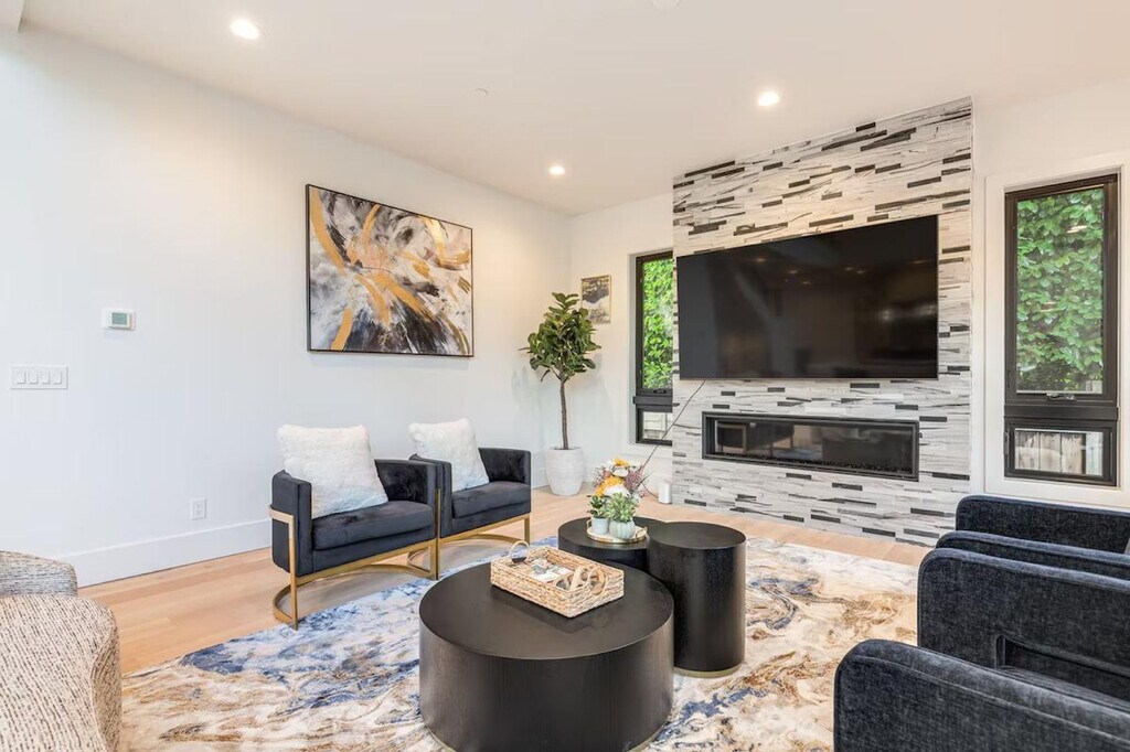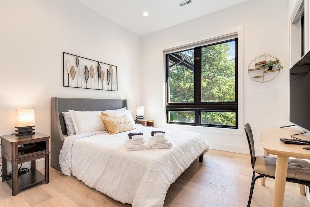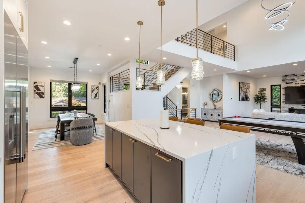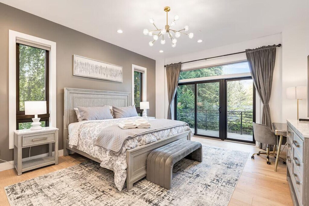 Discover luxury in this 5-bedroom retreat just minutes from Bellevue Square. With ensuite baths and room TVs in most bedrooms, this home is ideal for modern family living. This two-story home spans approximately 3,500 square feet and features 4.5 bathrooms. A few steps lead to the entrance, and while there is a separate guest suite in the basement and an office ADU, their entrances are completely separate, ensuring privacy. Experience the epitome of modern family luxury in Bellevue's prime neighborhood. Located just steps away from the downtown park, Bellevue Square, the art museum, shops, and top-rated restaurants, you'll immerse yourself in the true essence of local living. Walk to the light rail for easy access to Seattle. This retreat offers unparalleled comfort and convenience with ensuite bathrooms, bedroom TVs, a spacious living area, a primary suite boasting dual walk-in closets, extra laundry facilities, and a private balcony. The kitchen is stocked with a full range of appliances, cookware, silverware, servingware, spices, coffee, and tea. All beds are outfitted with high-quality mattresses, linens, and a comfortable duvet. Onsite washer and dryer are available for your laundry needs, with an additional set in the primary bedroom. Ample parking is available on the driveway and in front of the home, although the garage is not part of the rental. The primary suite includes an additional washer and dryer for convenience. Located in Bellevue's prime neighborhood, this home is just steps away from the downtown park, Bellevue Square, the art museum, shops, and top-rated restaurants. Enjoy the convenience of walking to the light rail for easy access to Seattle, immersing yourself in the true essence of local living. This home is not pet-friendly, with a $500 fine for unauthorized pets. Strictly no parties or events are allowed, with quiet hours between 10 pm and 8 am. No smoking or vaping of any kind is permitted anywhere on the property, including outdoor areas, and no digital piracy or shoes in the home. A $500 fine applies per violation. Guest access is granted via a smart lock. There are outdoor cameras located at the main entrance door, above the garage door, and above the basement door. Each room is equipped with a working desk and TV, providing a comfortable space for remote work. Very fast internet is available throughout the home, and a smart TV is ready for streaming with Netflix logged in for use. [SI]