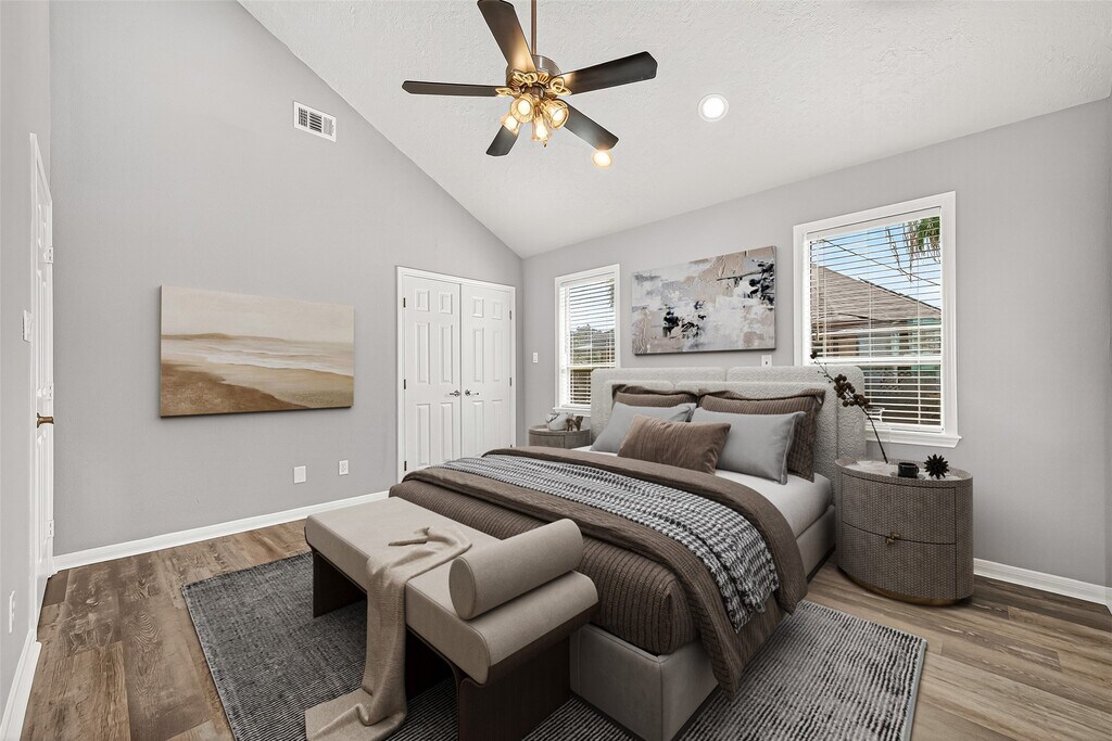 A CUSTOM HOME WITH AWESOME BAY VIEWS. A fantastic place to call your new home. The house has a multi-level deck with beautiful water views. Step inside to tall ceilings,New recessed lighting,ceiling fans,a custom entertainment center,custom cabinets,rare knife-edge granite,slate & new engineered flooring,an Oversized bathroom with a separate shower and tub,a large bedroom with a huge walk-in closet with built-in dresser and shelving,a bonus room off the kitchen & natural lighting throughout the home. The extra room could be an office with a trundle bed for guests,a pet room,or a workout area. Brand new AC system for the years to come. Get a golf cart and cruise around the area. Fantastic restaurants await you in the area. Yard Service is included with the rental. MLS# 6129607