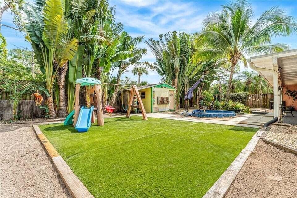 Explore the perfect rental opportunity with this expansive 2628 square-foot home, featuring 4 bedrooms, 3 bathrooms, and a 2-car garage. Situated on a half-acre corner lot in sought-after Vero Beach, this property boasts a large driveway that can accommodate your family and guests with ease. No HOA restrictions mean you can bring your RV or boat. The property is adorned with mature landscaping, a koi pond, a playground, and a spacious covered lanai, all within a fully fenced backyard that includes a shed for extra storage. There's also a private extra room, ideal for a guest room, office, or gym. Conveniently located with quick access to I-95, the Turnpike, schools, shopping, and the beach just minutes away.