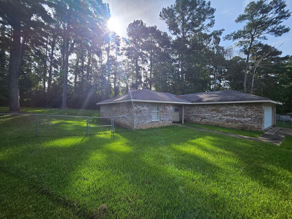 Located just minutes from the Fort Polk main gate on a quiet cul-de-sac, this well-maintained 3-bedroom brick home offers comfort, convenience, and space. Inside, you'll find an open living room with a cozy wood-burning fireplace, a dedicated dining area, and a kitchen with a breakfast bar, complete with range/oven, refrigerator, and dishwasher. A separate laundry room with washer/dryer hookups adds everyday convenience. All bedrooms feature laminate flooring, ceiling fans, window blinds, and generous closet space. The spacious primary suite includes a walk-in closet, a soaking tub, separate shower, and double vanity. Additional features include central electric heat and A/C, a two-car garage with openers, a covered back patio, and a fully fenced yard. The home offers approximately 1,450 square feet of living space. Pets allowed. One-year lease required.