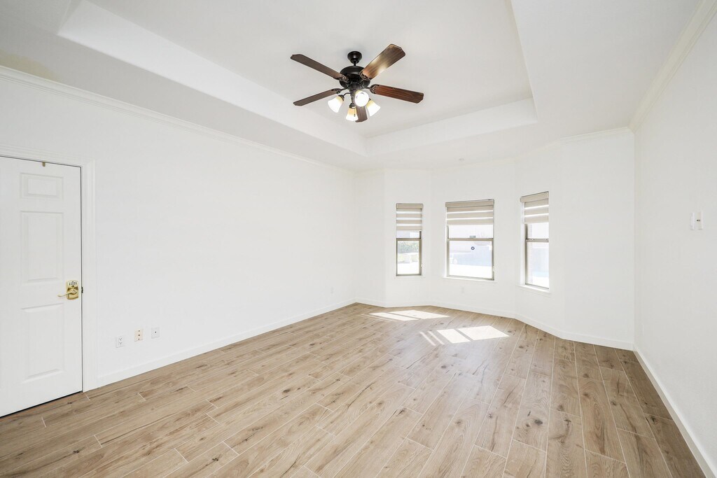 Step into comfort and space in this beautiful North Laredo home available for lease, located in a gated community. This two-story property offers 5 bedrooms, with the master bedroom conveniently located downstairs. There is also an additional bonus room that can be used as a home office, gym, or flex space—perfect for your family needs. The master suite includes two separate walk-in closets — his & hers and a spacious bathroom. Enjoy a backyard built for relaxation and entertainment, with heated pool.