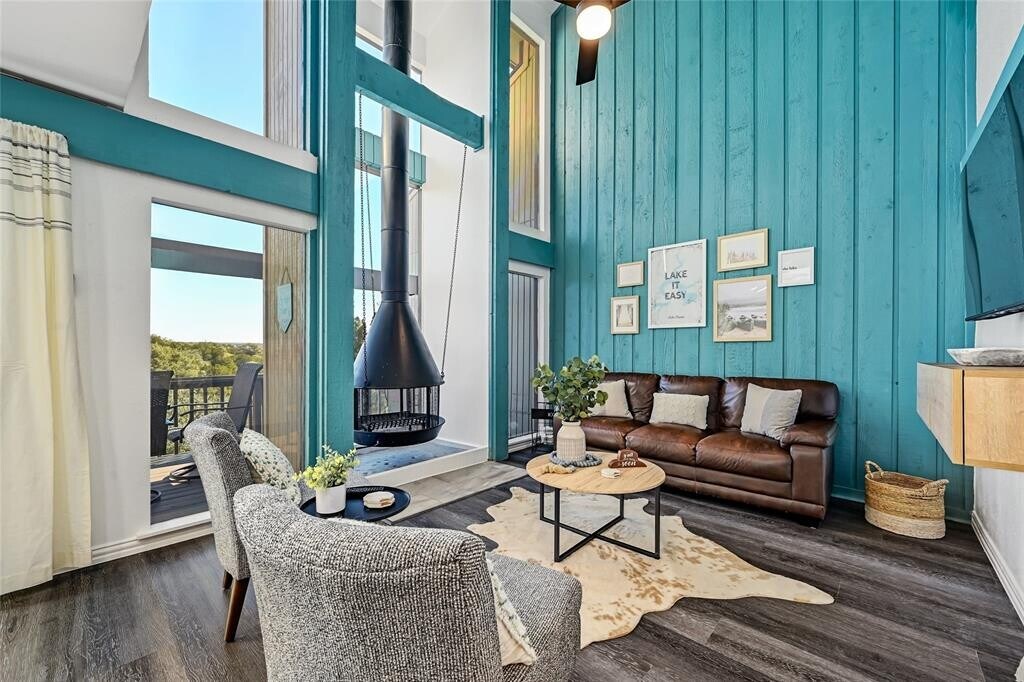 Enjoy the tranquil lifestyle of lakeside living at this beautiful townhome in Point Venture. This recently updated townhome features 3 bedrooms and 3 bathrooms all situated over 3 levels. An expansive wall of windows, soaring ceilings and a phenomenal wood burning stove create a warm and relaxed vibe in the beautiful living room. Whip up your favorite dishes in the updated kitchen that includes granite countertops, painted cabinets and white appliances. The main floor owner's suite is a relaxing retreat after a day of boating, fishing and swimming and boasts an ensuite bath and private patio. Head up the modern stairs to the secondary bedrooms. The alfresco patio is ideally positioned to take in the balmy tranquility of the lake and provides plenty of space for lounging, dining and enjoying great conversations. Walk to the tennis courts and swimming pool or get a quick 18 in with the Point Venture golf course right down the street. The ideal lifestyle awaits you; don't miss your opportunity to lease this incredible townhome!