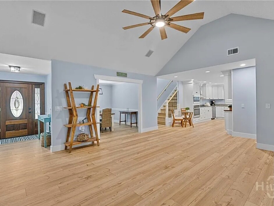 This Beautifully Renovated Home Blends Comfort, Style, and Smart Living. Open Floor Plan with fresh paint, luxury vinyl plank flooring throughout, and an airy, light-filled layout with brand-new windows and elegant plantation shutters. The kitchen is equipped with modern appliances, and all 3 bathrooms have been completely remodeled with stylish finishes. The first-floor master suite offers a private retreat. Fenced yard with boat / RV parking, new concrete driveway, 74’ gravel drive, and a spacious shed, all on a quiet cul-de-sac. No HOA Optional community dock access, perfect for boating, fishing, and fun. This move-in-ready home is made for relaxing and making memories.