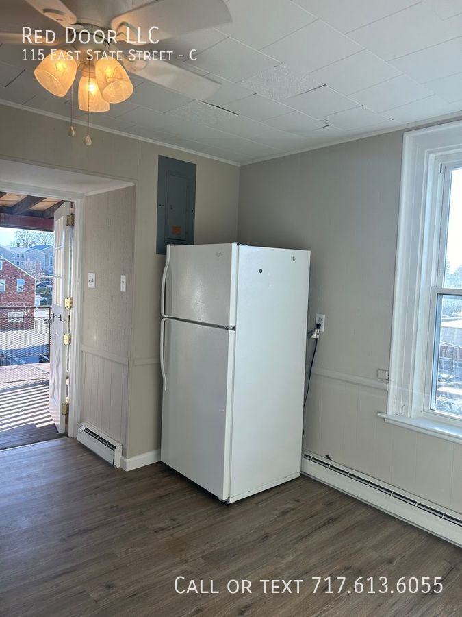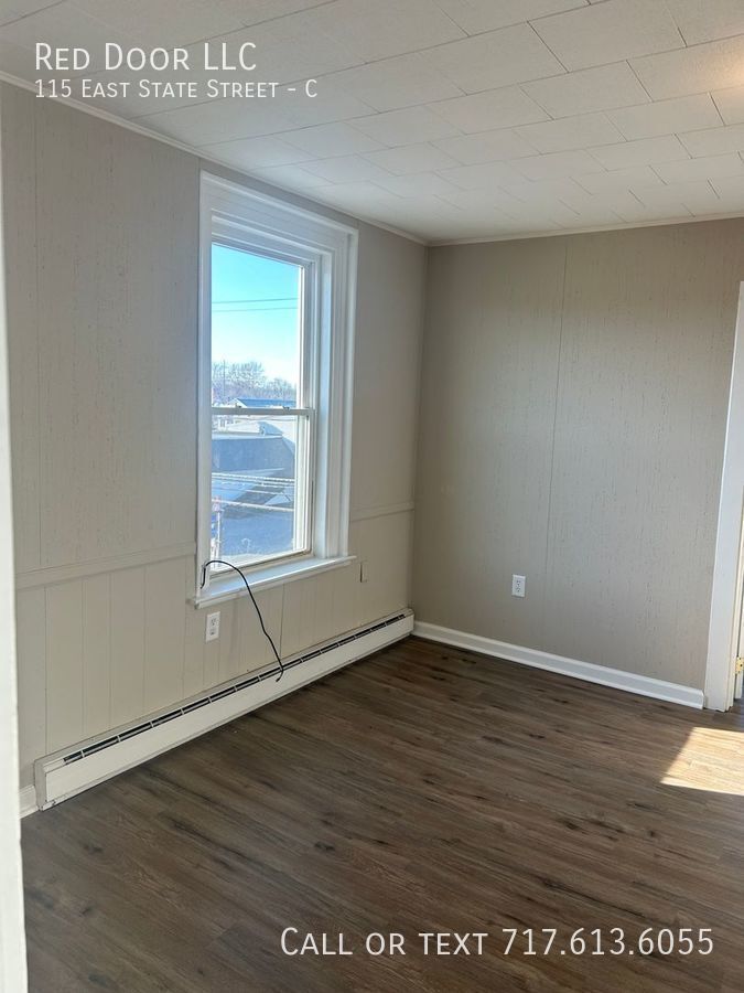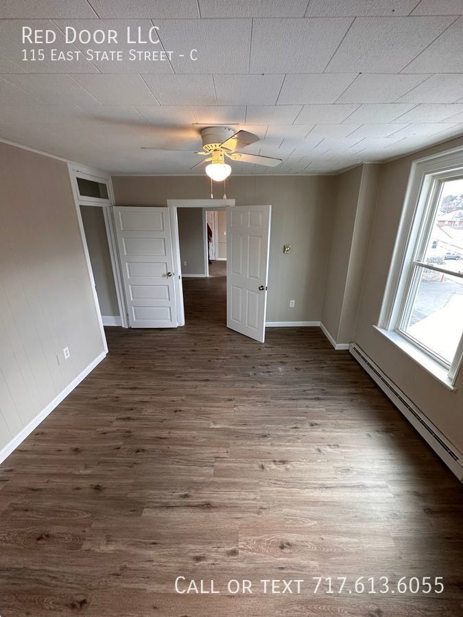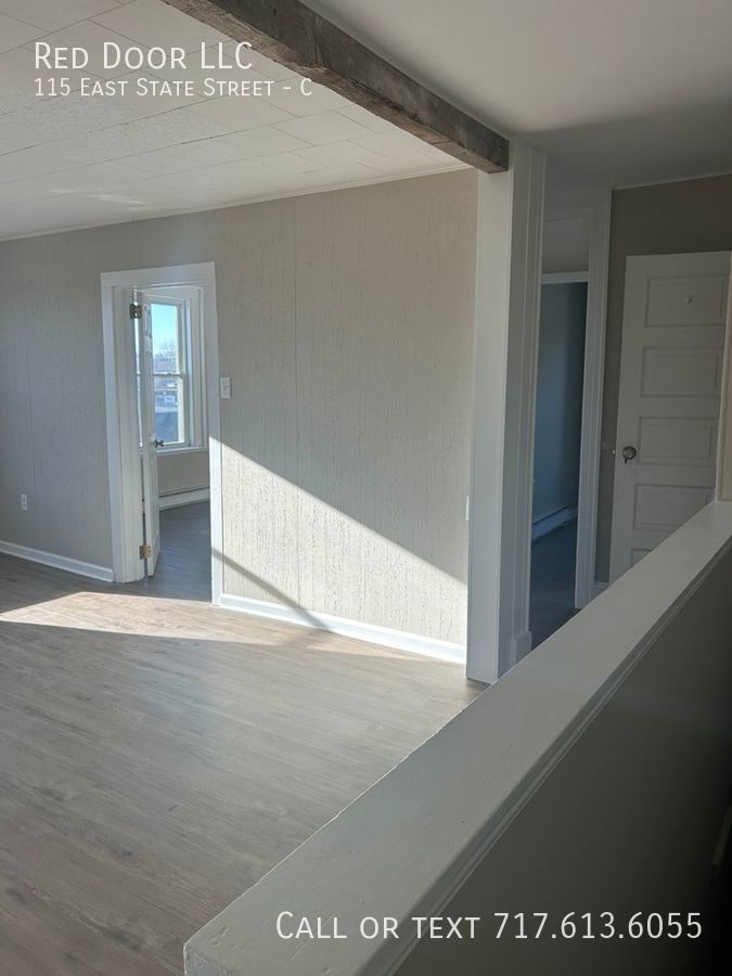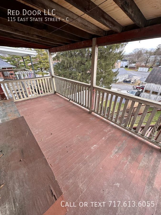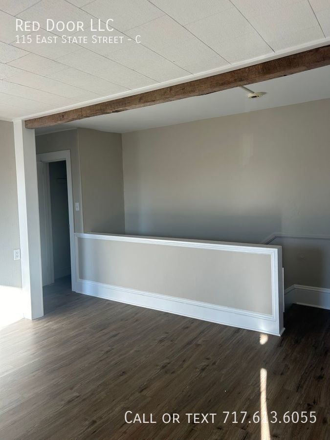 Don't miss out on this recently renovated 2 bedrooms, 1 bath 3nd floor apartment in the heart of Quarryville. New LVP solid surface flooring throughout, fresh paint, ceiling fans and eat in kitchen. Livingroom features exposed natural wood beam. Enjoy meals outside on your covered deck. Convenient off-street parking No smoking. Small pets allowed with an additional fee. This apartment is located in the heart of downtown Quarryville. Walk to restaurants and shopping. 1 mile to grocery store. Easy access to Rt 222 and Rt 272. Just a half hour to downtown Lancaster. Apt. is not section 8 approved. To Schedule a showing please call . Small dogs under 30lbs and cats allowed. $300 pet fee and $30 per month per pet. Utilities included in the lease: WST. Heat source: Electric baseboard. Utilities paid by Tenant: All utilities paid by tenant. Appliances Included: Range and Refrigerator Snow removal is the responsibility of the Tenant. Lawn Care is the responsibility of the Tenant. 1st-month rent is due at signing. 1 Month Security Deposit at move-in date. Minimum credit score of 600. Those under 600 will be considered. You may be asked to pay the first month's rent, last month's rent, and security deposit to move in. An income of 3x's the monthly rent is required. Good rental history required. Anyone with a past eviction or multiple landlord tenant court filings will not be approved. Wst