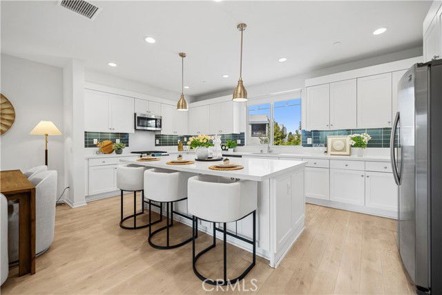- The property is located in Muse at Cadence Park. Offering 2,060 square feet across three beautifully designed levels, this home provides exceptional privacy for your family and effortless entertaining for guests. Enter through a charming front porch into a welcoming foyer featuring a coat closet and additional storage. The first floor includes a conveniently located guest suite with a private bathroom and walk-in closet, along with access to the generous two-car garage. The second level is the heart of the home an elegant open-concept living space highlighted by a fully equipped gourmet kitchen. Enjoy expansive countertops, a spacious island, and seamless flow into the dining and living areas. The living room is perfect for relaxing movie nights or hosting gatherings, with an adjacent deck offering additional outdoor entertaining space. The primary suite serves as a serene retreat, featuring a spacious bedroom, dual sinks, and a large walk-in shower with built-in bench seating. You can walk to Cadence Park School, and the home is only 3 minutes from Woodbury Plaza, providing exceptional convenience for dining, shopping, and daily essentials. Listing provided by: Wu, Amber of eXp Realty of Greater Los Angeles, Inc. LA State License 02188471 Listing posted by Orange County [SYNDID 4150357 01222026]