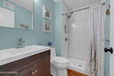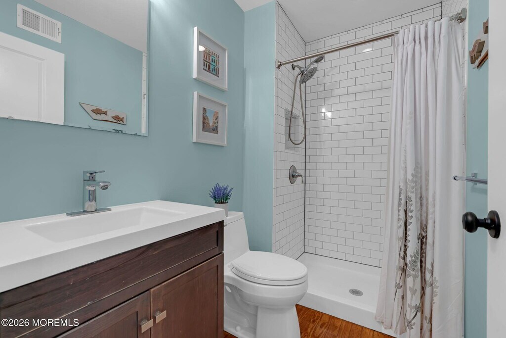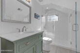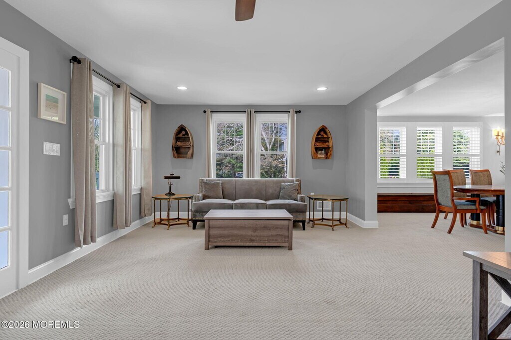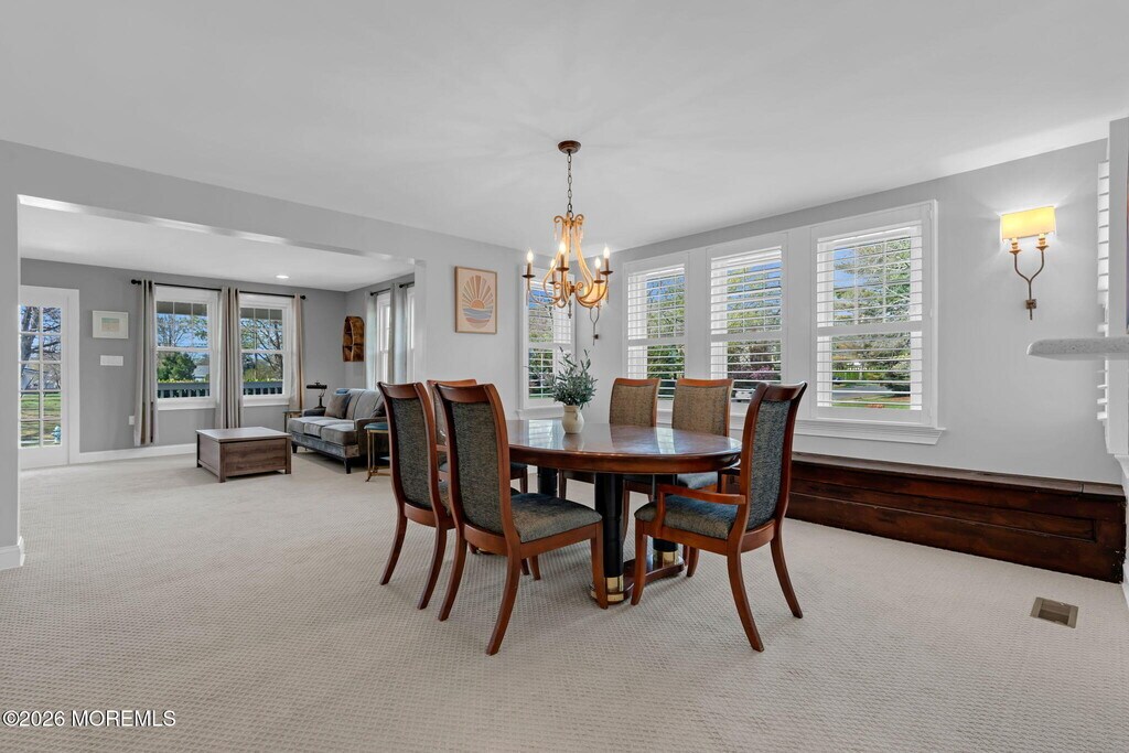 Experience the quintessential Jersey Shore summer in this sophisticated Interlaken Craftsman. Nestled in a serene,park-like setting with scenic Deal Lake views,this home offers a rare blend of lakeside tranquility & coastal proximity,only one mile to Asbury Park & Loch Arbour beaches. Enjoy ocean breezes from the covered porch or relax in the sun-drenched interior featuring 2-zone AC,a modern quartz kitchen,spacious living room w/ two seating areas & large dining room,complete w/ built-in bench & plantation shutters. The home boasts 2 bedrooms & a remodeled bath on the main level,plus 3 bedrooms & 2 baths upstairs,including a primary en suite with walk-in closet. Outside,a private fenced backyard & patio complement a detached 2-car garage with finished ''loft'' room above & deck.