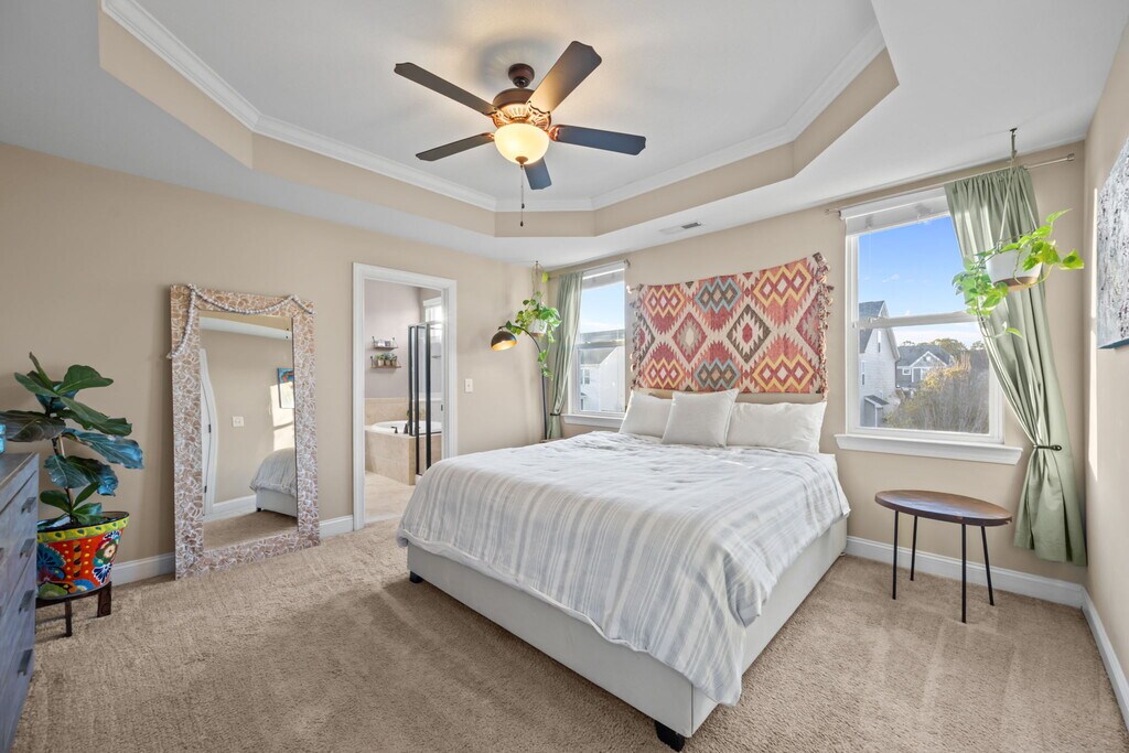 Available as early as May 25, this home welcomes you -- and your four-legged companions -- to settle in before the summer surge and begin enjoying the coast from the very start of the season. Located just a short drive -- approximately 5 miles -- from both Surf City and Topsail Beach, the home offers convenient coastal access without the congestion of living directly on the island. From sunrise beach walks to evenings by the water, the shoreline can easily become part of your everyday rhythm. When it's time to head beyond the coast, easy access to Highway 17 keeps Wilmington, Jacksonville, and Camp Lejeune comfortably within reach. Life within the community of The Neighbourhoods of Holly Ridge -- the subdivision this home is located in -- adds another layer of appeal. Sidewalk-lined streets encourage morning walks and bike rides, while the neighborhood's dedicated storage lot for boats, trailers, and RVs supports an active coastal lifestyle without sacrificing driveway space. The fully fenced backyard extends that lifestyle at home, offering a private outdoor retreat where dogs can roam confidently and you can relax on the open patio with coastal breezes. A raised garden bed is already in place for those who enjoy growing herbs, vegetables, or seasonal flowers. The nearby Surf City dog park provides additional space to run and socialize, and local pet supply stores with self-wash stations make cleanup after beach days simple. Just beyond the neighborhood, daily life feels remarkably convenient. The Surf City Community Center and park serve as a hub for activity, offering sports leagues, fitness programs, tennis courts, a skate park, and an inclusive playground. The Surf City Bridge over the Intracoastal Waterway provides a scenic and safe route for walking or biking toward the beach -- blending movement with water views along the way. Everyday essentials are seamlessly woven into the same close radius. Publix -- a highly regarded grocery store known for quality selections, custom cakes, a fresh soup bar, and convenient grab-and-go meals -- anchors your shopping options. Harris Teeter and Walmart Grocery provide additional variety, while nearby Lowe's and Ace Hardware make projects and quick fixes simple. Starbucks is just minutes away for your morning routine, and a local UPS Store keeps shipping and returns efficient. Cape Fear Community College's Surf City campus sits nearby as well, and the Karen Beasley Sea Turtle Rescue and Rehabilitation Center adds a touch of coastal character and community involvement. Stepping inside 115 Hampton Drive, flexibility takes center stage. The main level includes both a formal dining room and a separate eat-in kitchen dining area, allowing you to tailor the space to your needs -- whether that's traditional dining, a homeschool setup, a dedicated work-from-home space, a playroom, reading retreat, or a thoughtful blend of it all. The kitchen serves as the heart of the home, featuring granite countertops, a classic subway tile backsplash, a generously sized island, and a raised high-top bar that naturally separates prep space from seating. Whether hosting friends, helping with homework, or setting out a casual spread, the layout supports daily life with ease. Even the dishwasher includes a third top rack -- one of those subtle upgrades that makes everyday routines more efficient. All bedrooms are thoughtfully positioned upstairs, creating a natural transition from shared living spaces below to a quieter retreat at the end of the day. The primary suite offers space to unwind, complete with a soaking tub for slower evenings and a separate walk-in shower for mornings that require efficiency. The oversized fourth bedroom provides exceptional versatility -- spacious enough for two sets of bunk beds, a media or game room, a creative studio, or a combined guest and workspace. Direct access to a walk-in attic storage area keeps seasonal décor, luggage, and keepsakes organized and easily accessible. A flexible workspace features a pegboard accent wall -- a practical design element that adapts to your lifestyle. Whether organizing hobby supplies, displaying art, hanging tools, or creating an efficient command center, it offers both function and personality. The layout and flow of the home are best experienced through our newly captured 3D tour, available by request. The living area centers around a propane-based fireplace that adds warmth and atmosphere on cooler evenings. Installed TV wall mounts, curtain rods, and window coverings are already in place, and a washer and dryer can be included, making move-in straightforward. The garage adds additional functional storage, including a mounted surfboard rack -- and the surfboard itself may remain if desired. Whether you already have gear ready to hang or you're ready to begin building your own coastal collection, the space invites you to settle in quickly and make it your own. Tour it in person or request the newly captured 3D tour today. If you're considering a lease shorter or longer than 12 months, reach out to discuss options that may align with your timeline.