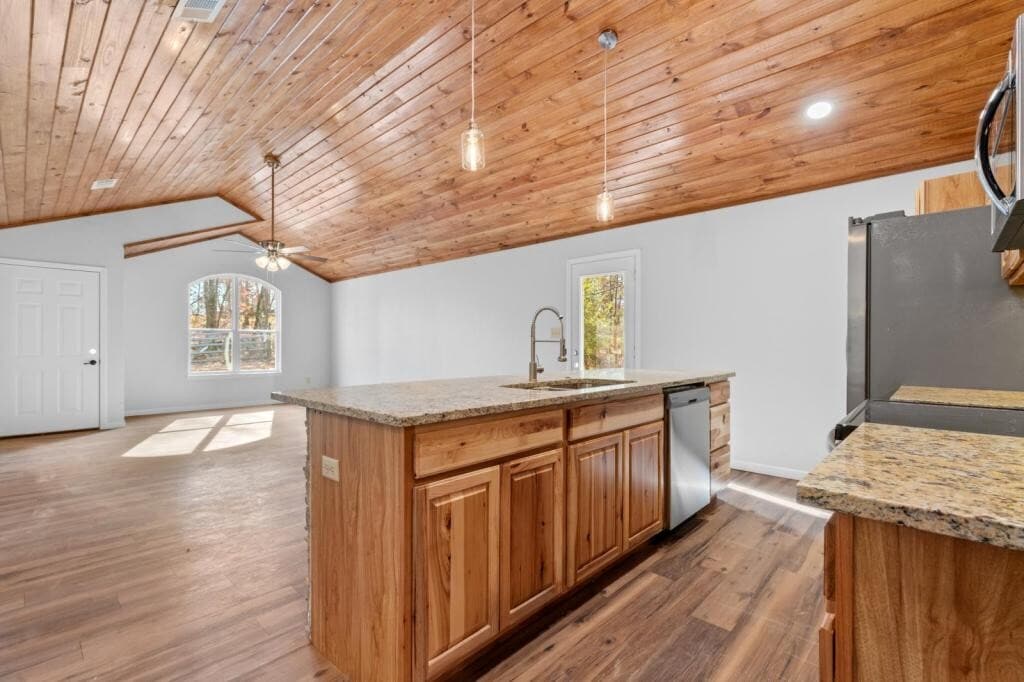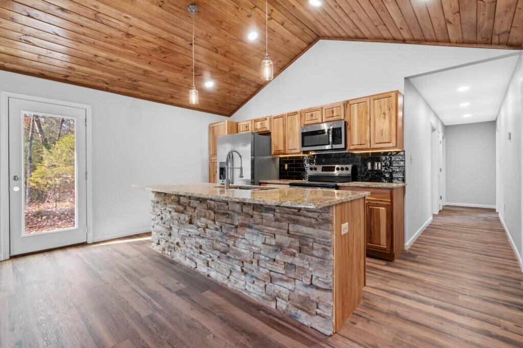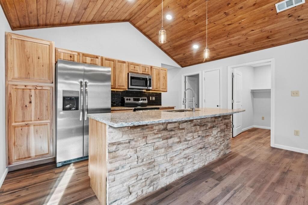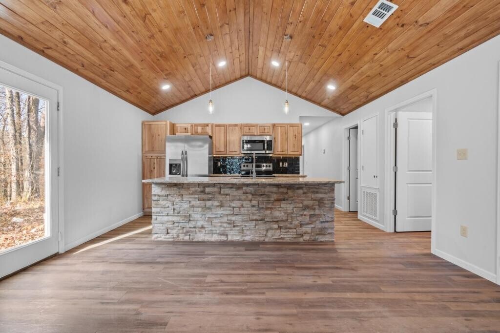 These beautiful, brand new duplexes, are ready to move in! Welcome to the home of your dreams! Built in 2024, this modern and stylish abode offers everything you need for a comfortable and convenient living experience. With three spacious bedrooms and two bathrooms, there is plenty of room for you to personalize and make this house truly feel like home. The living area, which is open to the kitchen, features wood look LVP floor (used through the entire home). A stunning vaulted ceiling covers the entire living and kitchen area, is covered in tongue and groove wood adding to the cozy ski chalet vibe. One of the highlights of this home is the state-of-the-art kitchen. Equipped with a stainless side-by-side refrigerator featuring a convenient water-in-door dispenser, a stainless stove, and a microwave, cooking and entertaining will be a breeze. The breakfast bar is covered with stacked stone and the lovely stained cabinets create a rustic appearance. The large windows provide great light along with can lights and pendants over the breakfast bar. The light paint colors keep it looking bright and cheerful. Whether you are a culinary enthusiast or simply enjoy preparing meals for yourself, this kitchen will exceed your expectations. In addition to the impressive kitchen, this home also offers a one-car garage, providing ample space for parking and storage. With washer and dryer hookups in the laundry area, laundry day will be a breeze. Plus, the added benefit of not allowing smoking ensures a clean and fresh environment for you to enjoy. Don't miss out on the opportunity to make this home in Lakeside School district yours. With its modern amenities, spacious bedrooms, and convenient features, it is truly a gem. Contact us today to schedule a viewing and start envisioning yourself in this beautiful home built in 2024. All applications must be submitted to Verifiable income equal to 3X rent is required. Rent $1675. Security Deposit $1500.00