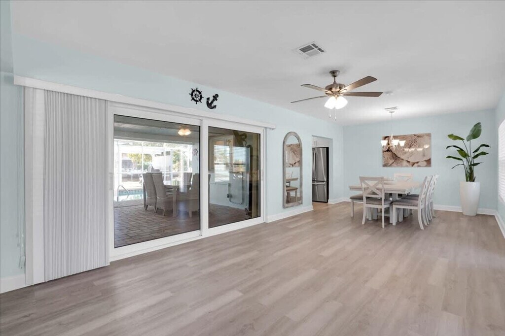 Feel at home in this beautiful canal-front home in Port Charlotte, Florida, offering true Florida waterfront living. This home features three bedrooms and two bathrooms. Harbor Haven features an open-concept layout with a fully equipped kitchen, spacious living and dining areas, and modern finishes throughout. Enjoy the private screened-in lanai featuring a heated pool, outdoor seating, and tranquil canal views. This canal-front home offers sailboat access to Charlotte Harbor. The private dock with water and electric is ideal for boating, kayaking, paddle boarding, and fishing. Located in a quiet, residential waterfront neighborhood in Port Charlotte, Harbor Haven is known for its peaceful canals and boating lifestyle. The area is perfect for morning walks, bike rides, and enjoying scenic water views. You are just minutes from Charlotte Harbor, local restaurants, shopping, golf courses, parks, and boat ramps. Only registered guests are permitted on the property. Quiet hours and pool hours are from 10:00 PM to 6:00 AM. Please supervise children around the pool and dock at all times. Use of the pool and dock is at guests’ own risk. No commercial photography or filming is allowed without prior approval. Failure to follow these rules may result in additional fees or early termination of the stay without refund. Minimum booking age is 25 years old. There is a zero-tolerance policy for parties or events. No outside visitors are allowed; only registered guests may enter the property. There is no loud music allowed, and 10 pm is quiet time. Smoking is not allowed inside the home, including vaping. [SI]