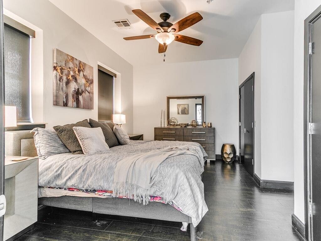 Experience downtown luxury in this four-story,fully furnished concrete brownstone,complete with an upgraded elevator to all floors,a south-facing 4th-floor balcony,and an oversized 2-car garage. Inside,enjoy three fireplaces,4-zone geothermal with Nest thermostats,high-end appliances,new windows,motorized blinds,and full smart-home features for effortless living. Just steps from coffee shops,a juice bar,restaurants,and close to the OKC Convention Center,Paycom Center,Scissortail Park,Bricktown,Automobile Alley,and Midtown. Tall ceilings,premium finishes,and stunning downtown views—including the Omni and First National—create an elevated,private feel. Built with brick over insulated BuildBlock,reinforced 8" concrete walls,and superior construction from floor to roof,this home offers vault-like durability,exceptional quiet,and energy efficiency—all with a low HOA unmatched by the competition. Property DOES come furnished/turn key ready! Less than a year lease options available!! Available for a short term month lease at rate of $10,000/mo. Full Service Lease with ALL utilities included. Security Deposit is equal to one month's rent $50 Application Fee Per Applicant (Approved Pets will add $50mo pet fee/per pet) Listing provided by Teddi Clanton,TAC Real Estate Services License #174342