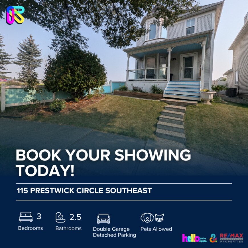 APS94380592 - Amazing 3 Beds, 2.5 Baths Single- Family 2 Pets Allowed No Weight Limit Welcome to your new home at 115 Prestwick Circle Southeast a modern and well-maintained 3 beds / 2.5 baths / Single- Family offering comfort, space, and convenience. Ideally located close to shopping, schools, parks, and transit. _____________________________________________________________ SHOWINGS: Conducted in an open-house format book your appointment today! Prices, availability, and promotions are subject to change without notice. _____________________________________________________________ PROPERTY DETAILS: - Furnished or Unfurnished: Unfurnished - Pets: 2 Pets Allowed No Weight Limit - Smoking: Non- Smoking - Parking: Double Garage Detached - Storage Included: No - Laundry: In- Suite Laundry - Management Type: Full Management - Lease Term: Long Term _____________________________________________________________ UNIT FEATURES: - Living Space:Open-concept living room layout, perfect for relaxing or entertaining - Kitchen: Sleek and modern kitchen with all appliances for a contemporary look with plenty cabinet storage to keep everything organized - Dining Space: Open-concept design flowing into the living space, perfect for entertaining - Bedrooms: 3 Bedrooms featuring ample storage for clothing and accessories - Window Coverings: Includes window coverings for privacy and light control ____________________________________________________________ UTILITIES: - Utilities Included: No Utilities Included Here''s a helpful tool you can use to get a rough estimate of utility costs. Just check out the link: _____________________________________________________________ LOCATION HIGHLIGHTS: - Outdoor Living: Nearby Parks, Pathways, Greenspaces - Transit & Access: Transit Lines / Major Roads Nearby - Family Friendly: Close to Schools, Childcare, Rec Centres - Local Conveniences: Groceries, Shops, Restaurants, Services Nearby Don''t wait properties like this don''t last long. Book online today: