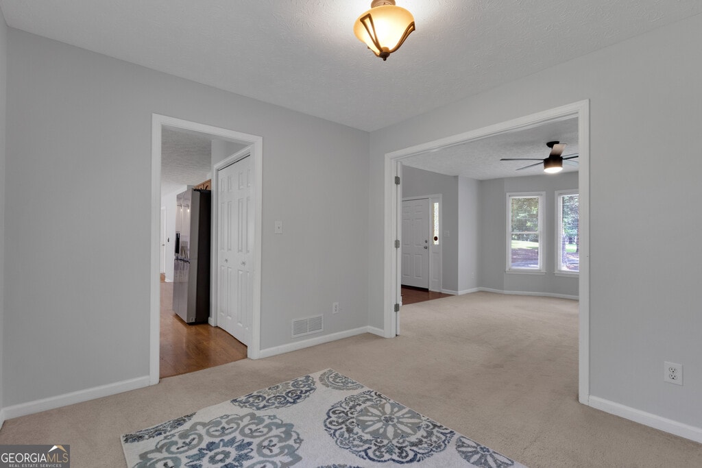 Great opportunity in this comfortable 4-bedroom, 2.5-bath home tucked away on a cul-de-sac in Tyrone. The main level includes a living room, dining room, kitchen with an eat-in area, family room, and bedroom that also works well as a home office, craft room, or extra space for your needs. Upstairs, the primary suite has tray ceilings, a walk-in closet, and an en suite bath with double sinks, a soaking tub, and a separate shower. Two additional bedrooms and a full bath complete the upper level. The unfinished basement has walk-out access to the backyard and includes a garage/storage area. The large yard offers plenty of space for gardening, or play. Convenient location in Tyrone with easy access to Peachtree City, Fayetteville, Newnan, Hwy 74, and I-85. ** Also listed for sale - see MLS #10547554**