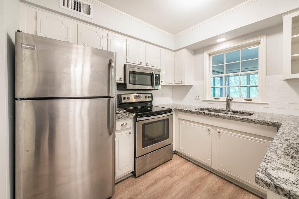 Live the Country Club Life at Cross Creek! Welcome home to this move-in ready,oversized 2-bedroom flat — the largest floorplan available! Step inside to a welcoming foyer with a tucked-away coat closet that leads to a spacious,light-filled living room complete with a cozy wood-burning fireplace. The renovated kitchen shines with granite counters,stainless steel appliances,and a breakfast bar that opens into the dining area,making entertaining a breeze. Relax in the sunroom and take in the view of the serene wooded meadow below — a rare retreat in the heart of the city. The expansive primary suite with private bath,a second bedroom,and updated hall bath round out this must-see condo home. All of this inside Atlanta’s gated Cross Creek community,where the amenities are second to none: 18-hole par 3 golf course,three pools (two saline),lighted tennis courts,pickleball,gym,EV charging,café/bar,and 24/7 manned Gatehouse. Country club living at a price you’ll love!