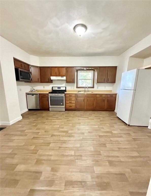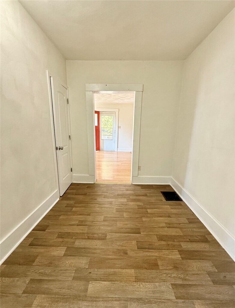 One Bedroom House in Prairie Lawn Subdivision, LVP Flooring Throughout Main Living Areas, 13 x 12 Living Room, 13 x 12 Dining Room, 14 x 13 Kitchen Provides Stainless Steel Appliances, Gas Range, Built In Microwave, Dishwasher, Garbage Disposal and Refrigerator, Full Hallway Bathroom, 10 x 8 Bedroom, Full Unfinished Basement, Covered Front Porch, Fenced Back Yard, Available 10/01/2025.