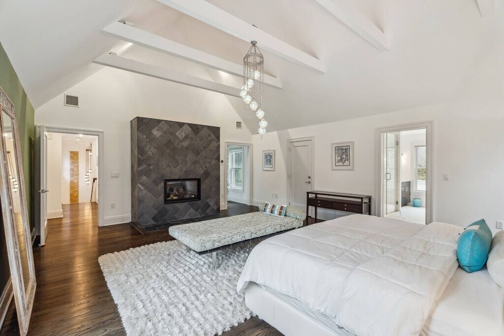 Moments from Main Street proper and the Ocean beaches that Bridgehampton offers, this Post Modern home located off the prestigious Lumber Lane corridor has had a complete renovation. Between the ocean, vineyards and farms, the location is perfect and moments to everything. Modern furnishings and unique art provide an inviting, stylish and comfortable stay. An open floor plan allows for carefree living and easy entertaining. Kitchen is complete with two dishwashers, microwave, oven, stovetop and breakfast counter. The bright spacious kitchen opens up to a blue stone patio that surrounds the back of the house overlooking the L-shaped gunite pool dining and lounge area, fire column, BBQ, complete with a European daybed. The chef's kitchen and dining room flow seamlessly to a comfortable family room with high ceilings and fireplace. The first floor also provides a bonus room with lounge, ensuite bathroom, meditation area and a separate media room with TV/cable. The second floor features three well appointed bedrooms (2 with king beds and 1 with queen bed), hard wood floors, large closets, including a large walk-in closet in the master, and central air conditioning throughout. All bedrooms are en suite and the Master Bath has radiant floor heating, stand alone bath and oversized shower. Access to 3 community tennis courts directly behind the house; tennis rackets and balls provided. Outdoor play area, complete with clubhouse, soccer goals. Beach chairs, umbrella, tent, beach towels and boogie boards provided. Plenty of toys for little ones, indoor trampoline and movie room with surround sound provided in the modern finished basement. Sonos system and in wall speakers provide central music controls throughout the home. In house fitness center complete with weights, elliptical machine, ballet bar and TV to stream your favorite workouts, complete with central cooling. Your retreat awaits moments from world class beaches, restaurants and Hayground Camp. [[Rental Registration # RP241033]]