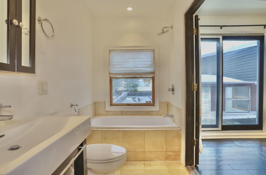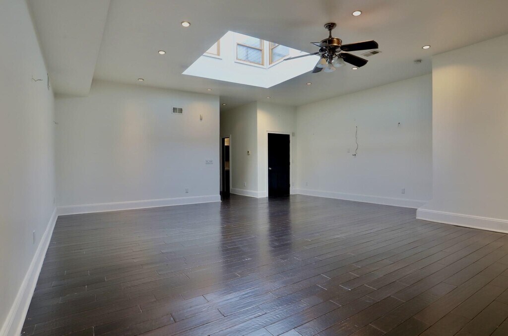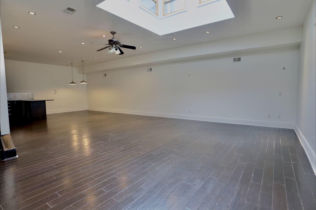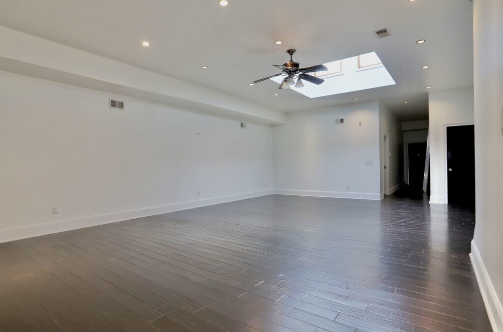 Incredible one of a kind open and spacious property in Jersey City heights! Home features a covered garage allowing for 2 car parking, 11 ft ceilings, huge 8x8 skylight, central ac/heat, in unit washer/dryer, updated appliances and granite countertops. The living room has 1500sq ft open concept perfect for entertaining and a large second floor bedroom with a walk-in closet and ensuite bathroom. This is a single family duplex home close to all public transportation, parks and restaurants.