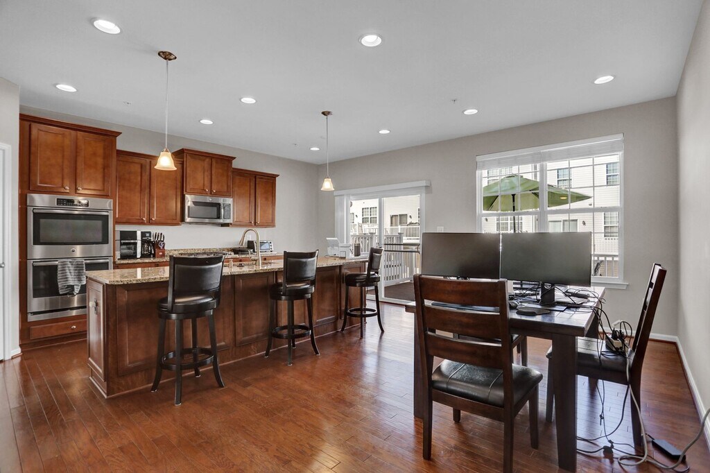 This stunning brick-front home offers 3 bedrooms, 2 full and 2 half baths, and an abundance of upgrades throughout. Step inside to find gleaming hardwood floors, a bright open kitchen with granite countertops, stainless steel appliances, double ovens, and a gas cooktop—perfect for cooking and entertaining. The spacious living area features a cozy fireplace, while the dining space flows seamlessly to a private deck for relaxing outdoors. Upstairs, the primary suite provides a peaceful retreat with plenty of space and comfort. Additional highlights include a 2 car garage parking space for convenience and ample storage. With modern finishes, a functional floor plan, and stylish upgrades, this home blends elegance with everyday living. Don’t miss the opportunity to make this exceptional property your new home!