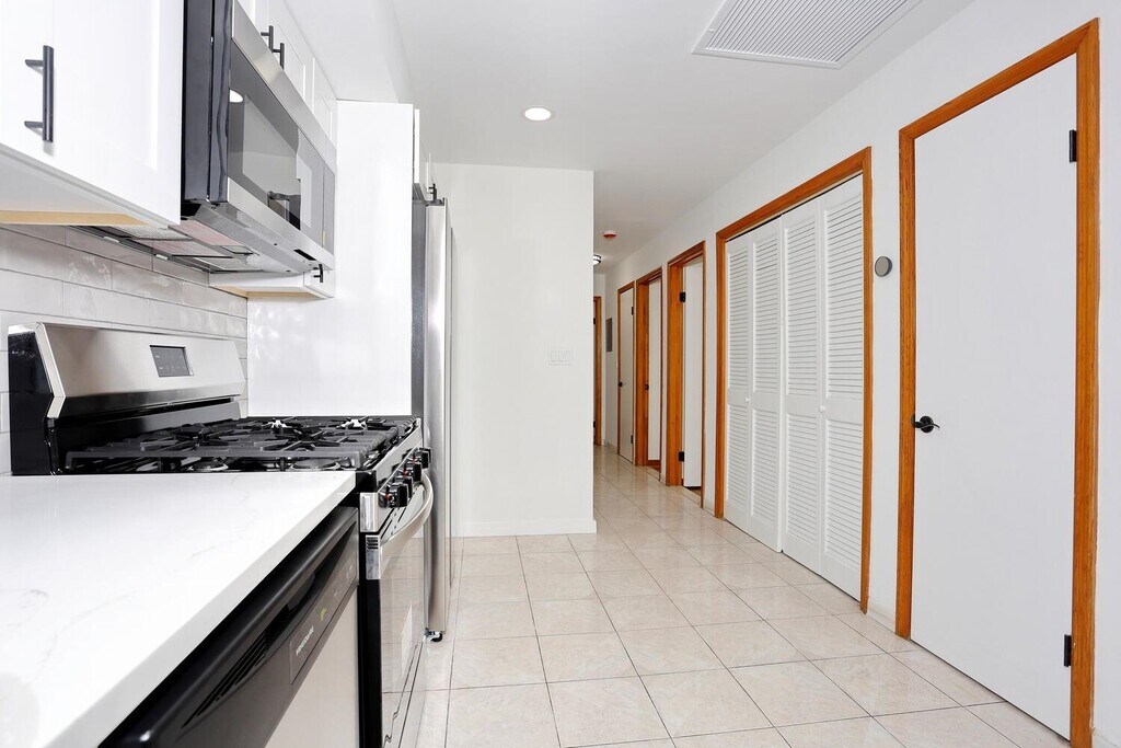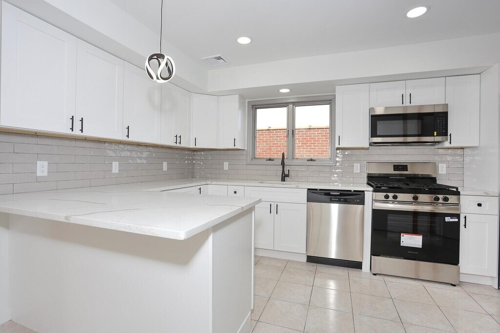 An abundance of natural light welcomes you to this spacious, beautifully renovated 3-bedroom, 2-bath apartment nestled in a quiet, sought-after neighborhood of North Bergen. This spacious home features an expansive living and dining area, and an open kitchen with quartz countertops, stainless appliances and a ton of cabinetry. The massive primary bedroom is complete with an ensuite bath and walk-in closet. Two additional bedrooms provide plenty of room for family, guests, or a home office. Central A/C and heating, washer and dryer hookups, and numerous closets throughout. Enjoy modern updates throughout, including new bathrooms, new flooring, fresh paint, 2 spacious balconies and one car reserved parking space included. Ideally located approximately 30 minutes from the Lincoln Tunnel, this home offers easy access to NYC and surrounding areas. Close to shops, schools, and public transportation, it perfectly blends comfort, convenience, and style. This home offers a modern lifestyle with spacious layouts, high quality finishes, and a prime location. No pets, No Smoking!