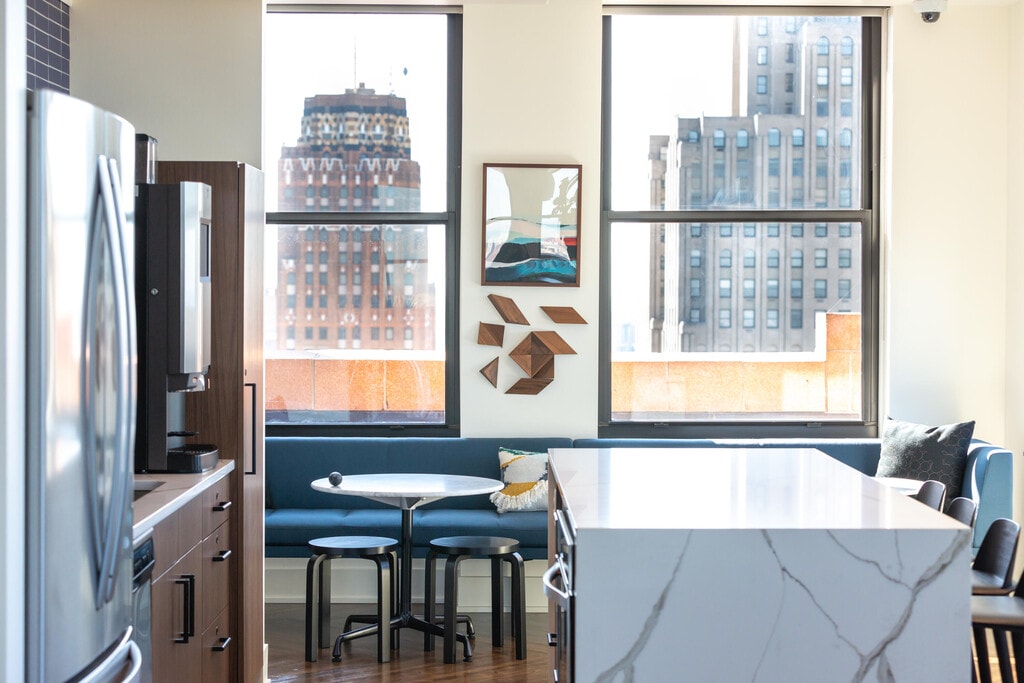 Towering high above the beautiful and historic Capitol Park in downtown Detroit,The Stott apartments offer a unique blend of Art Deco charm and modern living. Recently transformed into a contemporary residential property,this 38-story building features studio,one-,two- and three-bedroom apartments in 20 floor plans,all with vast city views and top-tier amenities.