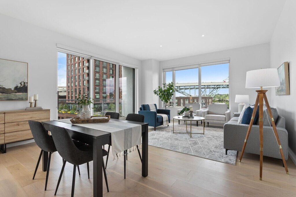 1,465 SF, 6th floor, 2 bedroom/2.5 bathroom NW corner unit Wool carpeted bedrooms Wood flooring living spaces Custom built-out closets Window coverings Contemporary flush faced solid-core painted wood doors Aluminum window systems have a Kynar paint finish State of the art wire will incorporate “multi-media” outlets CAT5E ports for telecommunications and COAX ports for cable. All patios and terraces include gas High efficiency heat & air conditioning Full sized washer & dryer Matte lacquer Bauformat cabinetry Solid surface quartz countertops/matching backsplash Kohler faucet w/pull out sprayer/soap dispenser Bosch Series stainless appliances Exterior vented range hood Matte lacquer Bauformat cabinetry Solid surface quartz countertops Dual sink vanity/under counter mounted Kohler faucet Ann Sacks porcelain tile wall/floor finish Built-in shower ledge Walk-in shower/full height glass wall/Kohler shower head 24 Hour concierge/security service Outdoor terrace on level five features: Fire table, lush landscaping & east facing deck over Fields Park Bicycle storage room/maintenance bench/a separate exterior entrance Free standing & wall mounted bike racks Fitness Center Two overnight guest rental suites/private entertaining facility Community Room w/gas fireplace & wine bar Conference room that can be reserved for private meetings & HOA gatherings No Smoking No Pets This is not an ADU We will begin accepting & screening applications on this unit 9/14/25 3pm Applications received before this time will be considered received 9/14/25 11pm per Portland ordinance See screening criteria here: Applications should be submitted at this link only Available Now - 12 month lease $3,900/month inc: water/sewer/garbage/gas/parking/storage $1,000 security deposit + $50 application fee + $800 building move/orientation fee