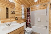 Escape to the serene beauty of the Smoky Mountains with a stay in this cozy 2-bedroom cabin in Pigeon Forge. Perfectly blending rustic charm with modern amenities, this inviting retreat promises a memorable getaway for families, friends, or couples seeking tranquility and adventure. Step inside to a warm and welcoming living room featuring a stone fireplace, perfect for cozy evenings. Relax on comfortable seating while enjoying your favorite shows or movies on the flat-screen TV. The fully equipped kitchen offers modern appliances and all the cookware and utensils you need to prepare delicious meals. For some fun and entertainment, the cabin offers a variety of video games, ensuring everyone has something to enjoy. Step out onto the furnished deck patio and take in the stunning mountain views. Unwind in the private hot tub after a day of exploring and fire up the BBQ for a delightful outdoor feast. The deck also provides a lovely spot for morning coffee or evening relaxation, surrounded by nature. Parking is available at the cabin for a maximum of 3 cars. Conveniently located near the attractions and activities of Pigeon Forge, this charming cabin offers the perfect blend of seclusion and accessibility. Local attractions include FrontPage Attractions, Dolly's Tennessee Mountain Home, Castle of Chaos, Parrot Mountain and Gardens, Hollywood Wax Museum, Winterfest riverwalk, and the TITANIC Museum Attraction. Traveler must be at least 25 years of age to make a reservation. A State Identification Card or Driver's License copy will be requested upon booking. The bunk bed is a twin over full. As you make your way to the cabin and travel around the area, keep in mind that some of the mountain roads can be steep and winding—that's part of the charm of being in the Smokies! Drive cautiously, especially if it’s your first time in the area, and give yourself a little extra time. Most guests make the trip just fine, and the views are absolutely worth it. NO SMOKING in the cabin. Any violation of the smoking policy will incur a $500 fine plus the cleaning costs necessary to remove smoke odors from the cabin and/or linens. NO PARTIES are allowed and violators will be charged a $200 to $500 fine. NO PETS ALLOWED. Any violation of this policy will incur a $200 fine. This is the rule of the Condo Association. [SI]