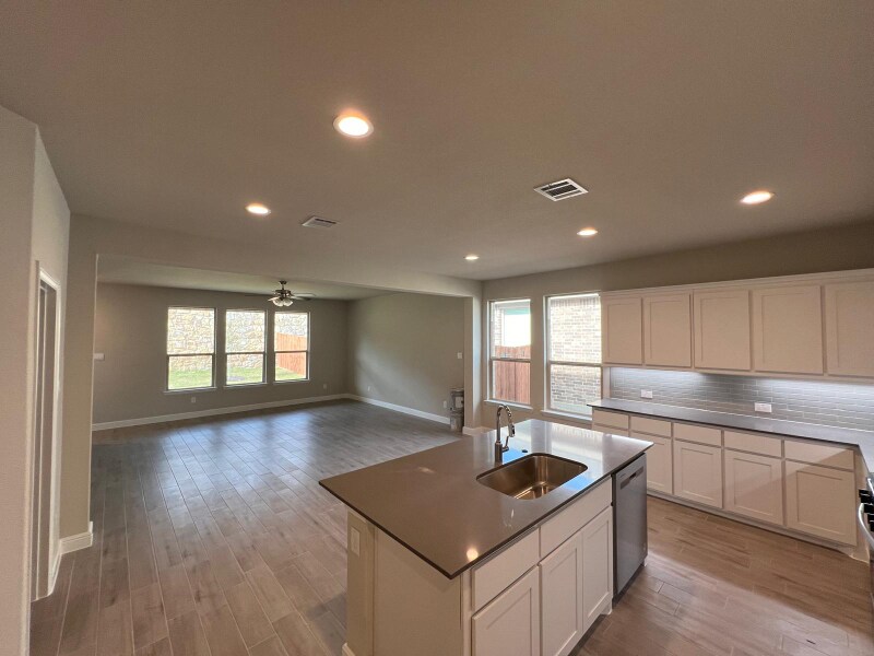 Property Id: 2377964 Almost new spacious and sun filled end unit home looking for its tenants in this open concept 4 BEDROOM 2 bath with an additional study/office room with French glass doors in this single Story Hobs Floorplan built by DR Horton. Large Chef's Kitchen with Island, Granite Countertops, under cabinet Lights, Stainless Steel Appliances(Laundry pair and SS 25 cuft Refrigerator Included), GAS Range and tiled backsplash opening to both the Dining and spacious Living areas. Luxurious main Bedroom at the rear of the Home with dual sink Quartz top Vanity, oversized Shower, linen and walk-in Closet. Covered back Patio with gas drop for grill, 6 foot fenced backyard, landscape package with full sod and Sprinkler System. Blinds included for all the windows.