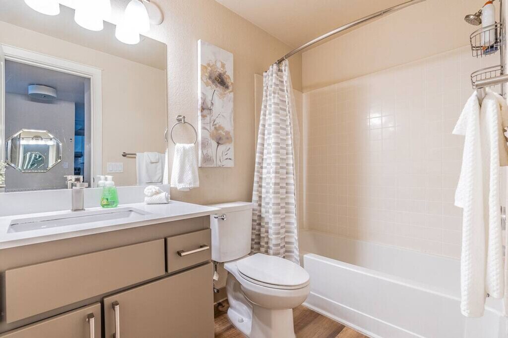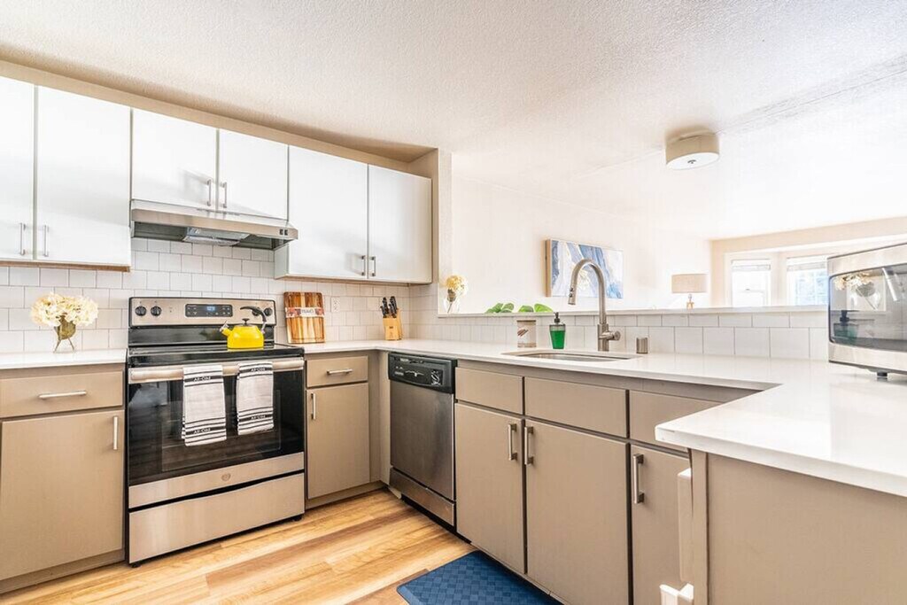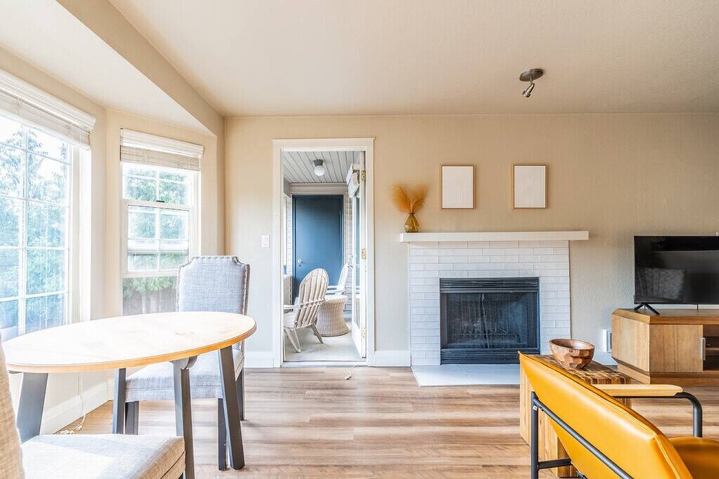 Feel at home in this cozy, stylishly furnished 1-bedroom apartment at Haller Post in North Seattle. Enjoy the convenience of top-floor living on the 3rd floor of building D. This modern and spacious apartment features high-speed internet, a modern smart TV, a kitchen with lots of storage, and an in-unit washer and dryer. The large kitchen offers plenty of storage, and the living and dining rooms provide comfortable chairs and tables. Relax on the outdoor patio with two reclining chairs. The room has plenty of closet space and blackout curtains for a peaceful sleep. Access to the gym, which is located close to the leasing office, is available 24/7. Pets are allowed, but must be included in the booking. Bringing pets without them being included in the booking will incur a $300 charge per pet, per violation. Located in the heart of the Northgate neighborhood, this apartment is home to Northgate Mall and North Seattle College. It's just one minute from Haller Lake and Highway 99, and five minutes from Northgate Mall. Downtown Seattle and CenturyLink Field are a quick drive or bus ride away. You'll be close to entertainment, with golf courses nearby and a bike ride away from Green Lake. The Northgate Mall area offers plenty of shops and restaurants, and downtown is about 15 minutes away via I-5 or 99 hwy. The neighborhood boasts plenty of green spaces and parks, and a dog park is nearby. Smoking is not allowed inside the apartment or on the balcony, and violation of this policy will result in a $250 fine for cleaning and odor removal. Quiet hours are from 10:00 PM to 8:00 AM. Please be considerate of neighbors and keep noise levels to a minimum during quiet hours. No loud parties or events are allowed. Excessive noise complaints may result in a warning, followed by a $150 fine for each subsequent violation. Any lost key or fob/key combo will result in an additional $120 fee. If the fob/key combo is not placed in the hook during check out, that will be an additional $100 penalty. [SI]