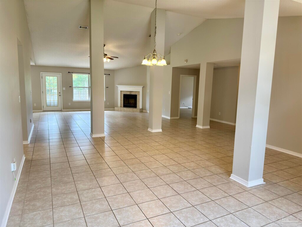 11502 Aruba Dr is a fantastic 4 bedroom,3 bath home boasting over 3,000 sq/ft of spacious living. Upon entering the home,you'll be greeted by soaring ceilings,gorgeous tile floors throughout and an immense kitchen and great room that are ideal for gatherings with friends and family. Bring the entertaining outside and enjoy the generously sized yard with a green space behind for added privacy. At the end of a long day,retreat to your massive master bedroom (23.4X14.4) and relax and unwind in the jetted tub. This home has been freshly painted through out. Manchester neighborhood is centrally located: just minutes from NAS Pensacola,Corry station,hospitals,State Parks,boat ramps and our world famous pristine beaches. This property requires participation in the MSPM Resident Benefit Package for an additional monthly fee. Additional information on this program can be found upon submission of application.