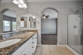 Welcome home to this beautiful single story with tons of fantastic upgrades. Kitchen boasts stainless steel appliances,extended island,white cabinets with four inch crown molding and granite counter tops. Granite continues in both bathrooms with double sinks and a separate shower and tub in master bath. Master bedroom has bay window sitting area and his and hers walk-in closets. Backyard is beautifully landscaped with flowering plants and trees,large sitting area surrounding gas fireplace,RV gate,extended patio with ceiling fan and surround sound. North/ South corner lot near one of three new community playgrounds and parks. Surround sound extends to living and family rooms. 3 more bedrooms and an extra large mudroom/ laundry room round out this gorgeous home. Tour Today!