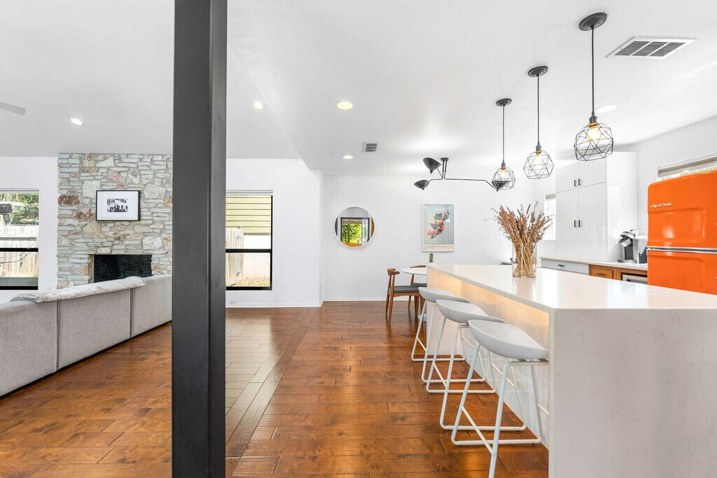 The advertised rate of $7,454/month is the lowest available price, based on a 30 day(s) stay with a move-in date of March 8, 2026. Rates vary depending on the duration of stay, season, and other parameters. For exact pricing and additional pricing components, please visit our website and enter your desired move-in and move-out dates. The rate is applicable when billed upfront; it can be higher if billed in multiple payments. Welcome to your new home in the Great Hills area of Austin. Nestled in the Texas Hill Country, this 1-story, 3-bedroom house offers 1,680 sqft of living space with stunning views, tree-lined streets, and peaceful surroundings. Designed with a home-inspired aesthetic, this house features a fully stocked kitchen with pots and pans, bakeware, dinnerware, silverware, cookware, blender, and toaster. Enjoy comfort with central air conditioning and heat, fresh towels and bathroom essentials, complimentary coffee and coffee condiments with a Keurig machine, and an on-site laundry. Relax in the backyard patio or in the living room with the oversized, super comfortable sectional. This house is pet-friendly (fees apply). Discover the beauty of the Great Hills area in Austin! This upscale neighborhood is conveniently located near shopping, dining, and top-rated schools. Enjoy outdoor recreation with nearby parks, hiking trails, and the Great Hills Country Club. The Domain is an 11-minute drive away, Downtown (West 6th St.) is a 16-minute drive, Zilker Park / ACL is an 18-minute drive, and the airport is a 23-minute drive. Only 6 cars are allowed to be parked at the house at any given time. Smoking, parties, and excessive noise are not allowed, including on balconies and in shared spaces. Smoking violations are subject to a $1,000 fine, which includes the cost to clean, deodorize, and repair damages. Undisclosed pets will be charged at $200 per day. Guests who stay beyond their designated checkout time or delay our housekeeping staff are liable for any associated costs and expenses, up to $75 per hour after 10 am. Includes a dedicated office space with a comfy desk chair and ultra-fast Wi-Fi. [SI]