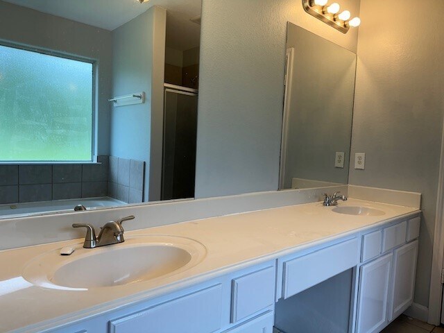 1 story with open floor plan,Primary bath has double sinks,garden tub and standup shower & no carpet in home. Check out this Massive Backyard and covered back patio on a quiet street. Never Flooded,no flood insurance required. The stone exterior looks great and Huffman schools are nearby. Excellent central location in Huffman. Property is also for sale. MLS# 15894995