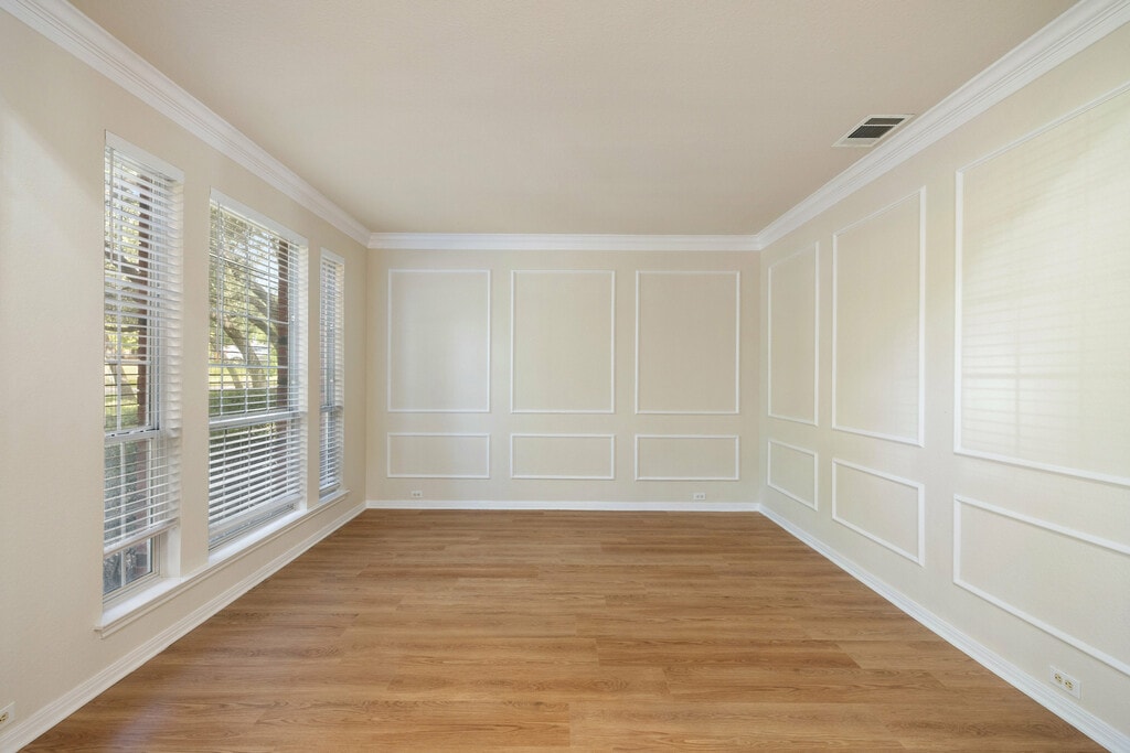 Welcome to this spacious rental home tucked away on a quiet cul-de-sac in highly desirable North Austin. With multiple living and dining areas, high ceilings, and expansive windows that fill the interior with natural light, this residence offers the perfect balance of comfort and functionality for everyday living. Hardwood floors throughout add warmth and character, while recessed lighting provides a polished, modern touch. The flexible floor plan is designed with families in mind, offering plenty of space to spread out. A front living room can double as a home office or study, while the main family room connects seamlessly to the breakfast area and kitchen for easy entertaining and day-to-day convenience. The primary suite is located downstairs for privacy, while additional bedrooms upstairs allow room for family, guests, or hobbies. Outdoors, a large deck overlooks a tree-filled backyard that provides privacy and ample room for kids, pets, or weekend gatherings. Whether relaxing under the shade or enjoying time with loved ones, this yard offers the lifestyle many renters are looking for in North Austin. Situated just minutes from The Domain, The Arboretum, and top North Austin employers, this home also offers easy access to shopping, dining, and entertainment. Parks, greenbelts, and trails are nearby for outdoor recreation, while major highways like 183 and Mopac make commuting downtown or across the metro a breeze. If you’ve been searching for a family-friendly rental in North Austin, this home delivers space, convenience, and location all in one.
