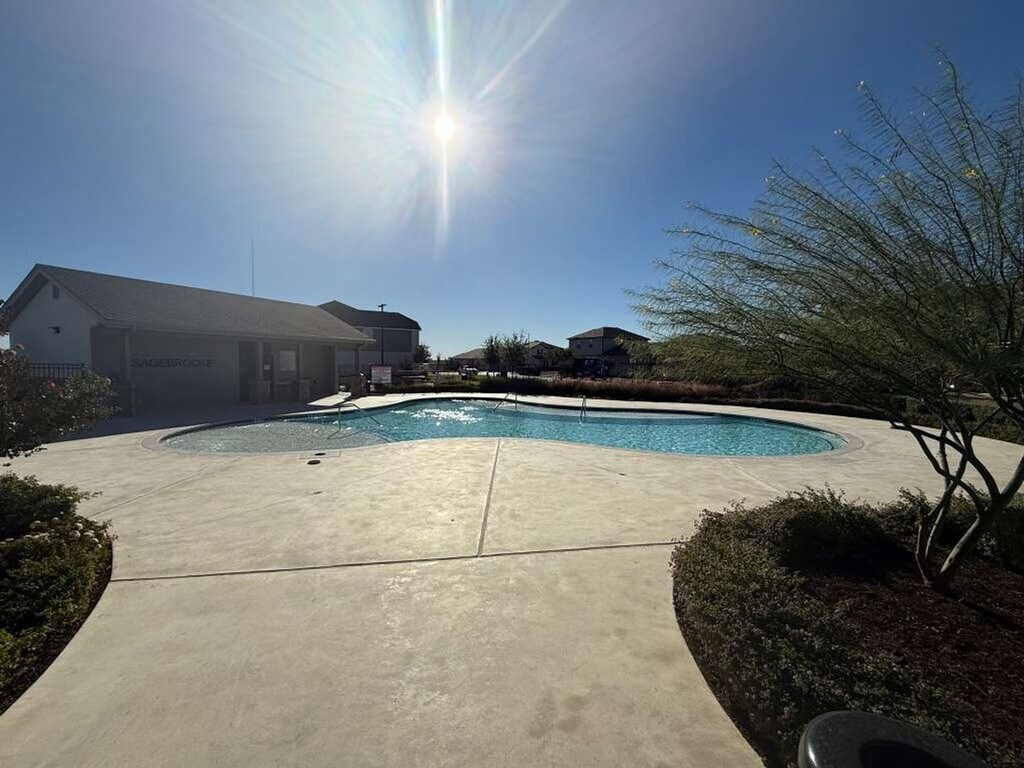 MUST SEE! BRAND NEW (2024 Construction) 1-story Meritage "Allen" plan in the sought-after Sagebrooke community, Northside ISD. This energy-efficient 3 Bed/2 Bath home is built for modern living and lower utility bills. Features a bright, open-concept layout and luxury finishes throughout. Gourmet Island Kitchen boasts solid countertops, stainless steel appliances, and is open to the dining and family rooms. The spacious, secluded Primary Suite offers a walk-in closet and a spa-like bath with double vanity. Home includes two flexible bonus areas: a Front Flex Space (perfect for a home office/study) and a Teen Room! Enjoy a private, fenced backyard with a covered patio, plus access to the BRAND NEW Resort-Style Community Pool and playground. Excellent location with convenient access to Alamo Ranch, major shopping, and NISD schools. Don't miss this opportunity for a new home experience!