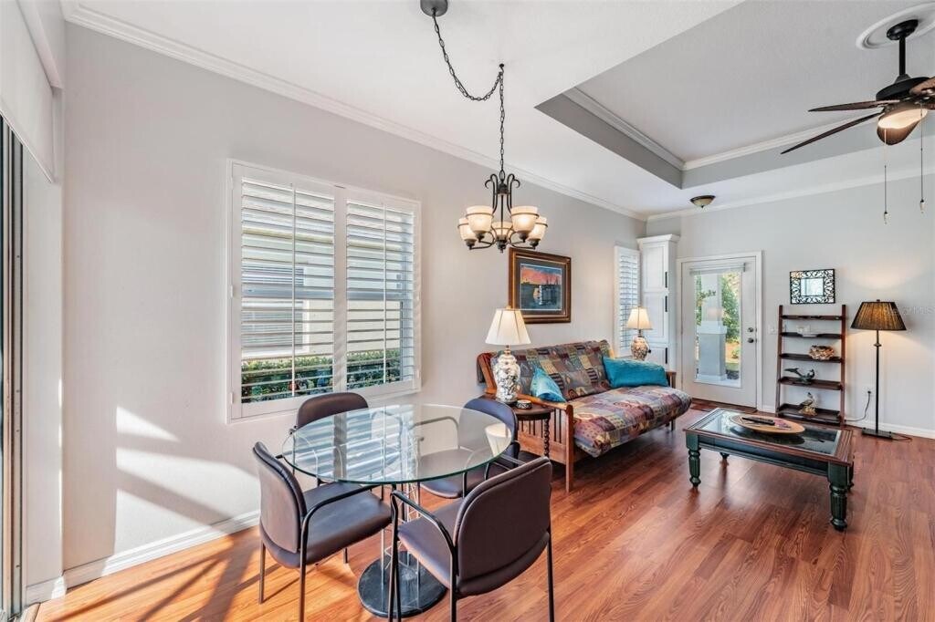 **AVAILABLE FOR RENT IMMEDIATELY** Welcome Home to Bradenton, Florida! This charming 2-bedroom, 2-bathroom bungalow, located in the HIGHLY-desirable community of Central Park at Lakewood Ranch, was built in 2011 and has 2 bedrooms and 2 bathrooms. This home offers a serene retreat within a secure gated community, ensuring both privacy and peace of mind. The architectural charm of this residence exudes a cozy bungalow style, while the community amenities enhance your lifestyle. Enjoy leisurely days by the community pool with a splash zone, stay active on the tennis court, and make use of the clubhouse and fitness center for a vibrant community experience. Safety is paramount with hurricane shutters and plantation shutters in place, ensuring preparedness for any weather event. Embrace the Florida outdoor lifestyle on the screened-in patio, complemented by a video doorbell for enhanced security. Inside, an open-concept floor plan with a 2-way split design provides versatility and a sense of spaciousness. The kitchen is equipped with stainless steel appliances and granite countertops, while tile and ceramic flooring contribute to easy maintenance. Custom built-in bookshelves, crown molding, tray ceilings, and plantation shutters add touches of elegance. Convenience meets location with close proximity to I-75 for easy commuting and quick access to Tampa, local beaches, and more. This isn't just a home; it's a lifestyle. Make this Lakewood Ranch gem yours and indulge in the perfect blend of comfort and style. Contact us today to schedule a viewing and start envisioning your new life in this fantastic home.