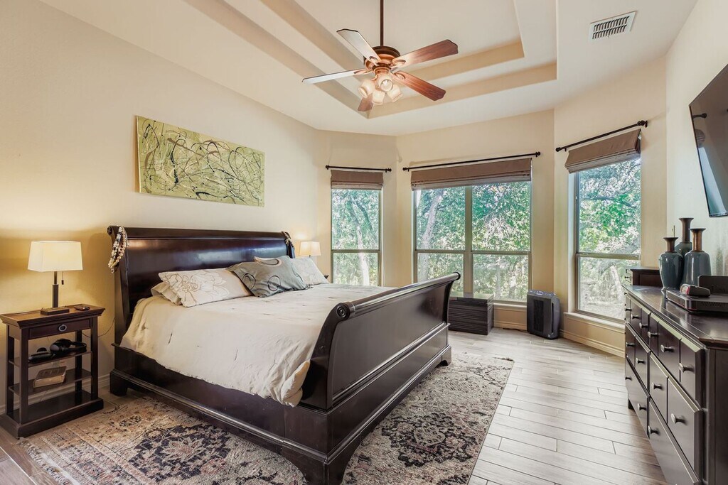 Welcome to 11511 Baxtershire, a stunning 4-bedroom, 3-bathroom, 2,694 sq. ft. two-story home nestled on a beautiful one-acre lot in the desirable Beverly Hills neighborhood of Helotes. This Hill Country gem offers the perfect balance of space, comfort, and scenic surroundings — just minutes from San Antonio conveniences. Step inside to an inviting open layout featuring a bright living area with large windows that frame serene views of the mature oak trees surrounding the property. The updated kitchen boasts granite countertops, stainless steel appliances, and plenty of storage — ideal for both everyday living and entertaining. The primary suite offers a peaceful retreat with a spacious en-suite bathroom and walk-in closet. Three additional bedrooms and multiple living areas provide flexibility for family, guests, or a home office. Outside, enjoy the tranquility of your expansive backyard — perfect for gatherings, gardening, or simply relaxing under the Texas sky. This property provides endless possibilities. Located in the heart of Helotes, this home offers a rare blend of privacy, space, and charm within a short drive of shopping, dining, and highly rated Northside ISD schools. Experience Hill Country living at its best — 11511 Baxtershire is ready to welcome you home. Lawn care is included. All residents will be enrolled in a Resident Benefit Package.