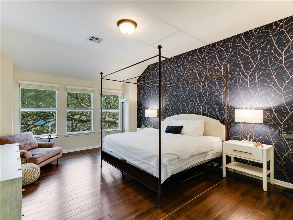 This stylish home offers an excellent floor plan, gorgeous updates, and a quiet cul-de-sac lot! 3,282 square feet, 4 bedrooms, 2.5 baths, dedicated study, 2 dining areas, upstairs game room, and downstairs bonus room. The updated open kitchen has stainless appliances, double ovens, built-in gas cooktop, farm sink, quartz counters, breakfast bar, huge island, and pendant lighting. Features include vaulted ceilings, tall windows, wood flooring, pretty tile flooring, well-designed jack-n-jill bathroom, wrought iron balusters, and NO carpet! The primary bedroom has elegant updates and the primary bath has a garden tub, separate shower, double vanity, and walk-in closet. The two car garage is the size of a three-car garage, which means lots of extra storage space. Zoned to Purple Sage Elementary, Grisham Middle School, and acclaimed Westwood High School, which has won the College Success Award - Gold for several years. This home has easy access to Hwy 183, RR 620, TR 45, restaurants, and shopping. The Anderson Mill Limited District offers two pools (for a reasonable fee), playgrounds, tennis courts, picnic tables, trails, and a pavilion.